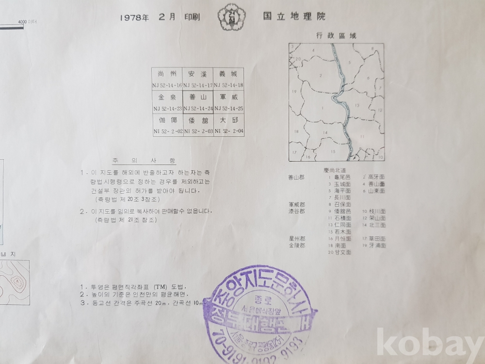 ****1974년 1:50,000 지도 (선산) 선산군, 군위군, 칠곡군, 성주군, 김릉군 수록됨