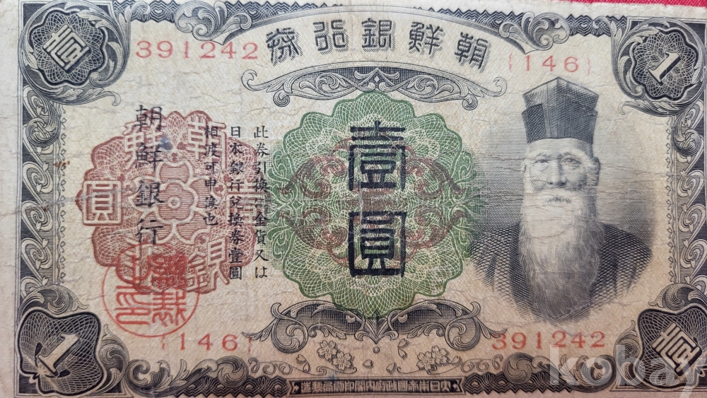T ㅡ2권 4호 넷좌번 ////// 일제강점기 때 사용되었던 조선은행의 일원 지폐입니다,