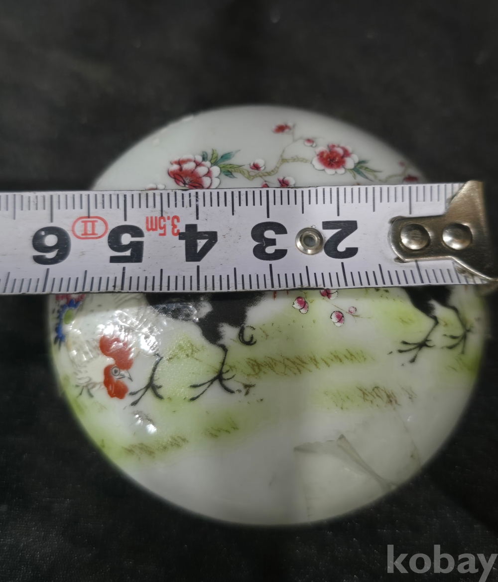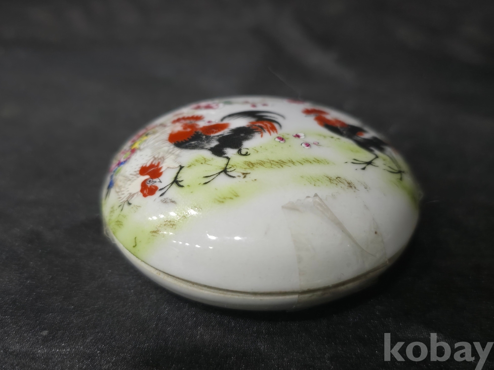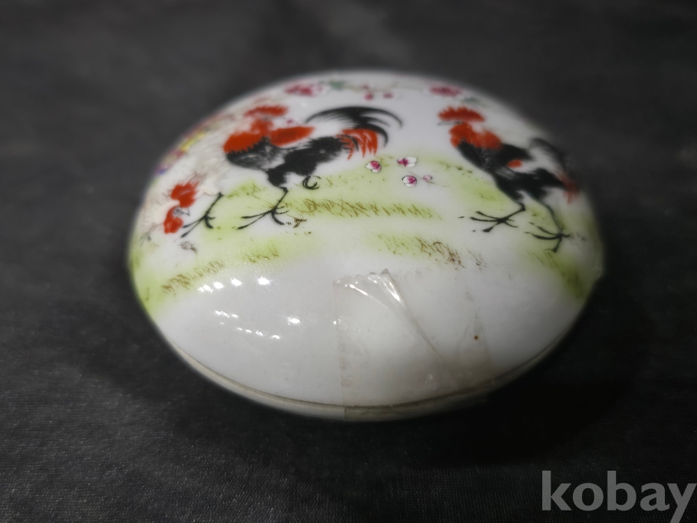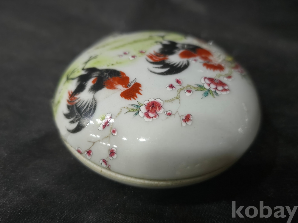 중국도자기 백자합 / 닭그림이 분채로 그려진 백자합