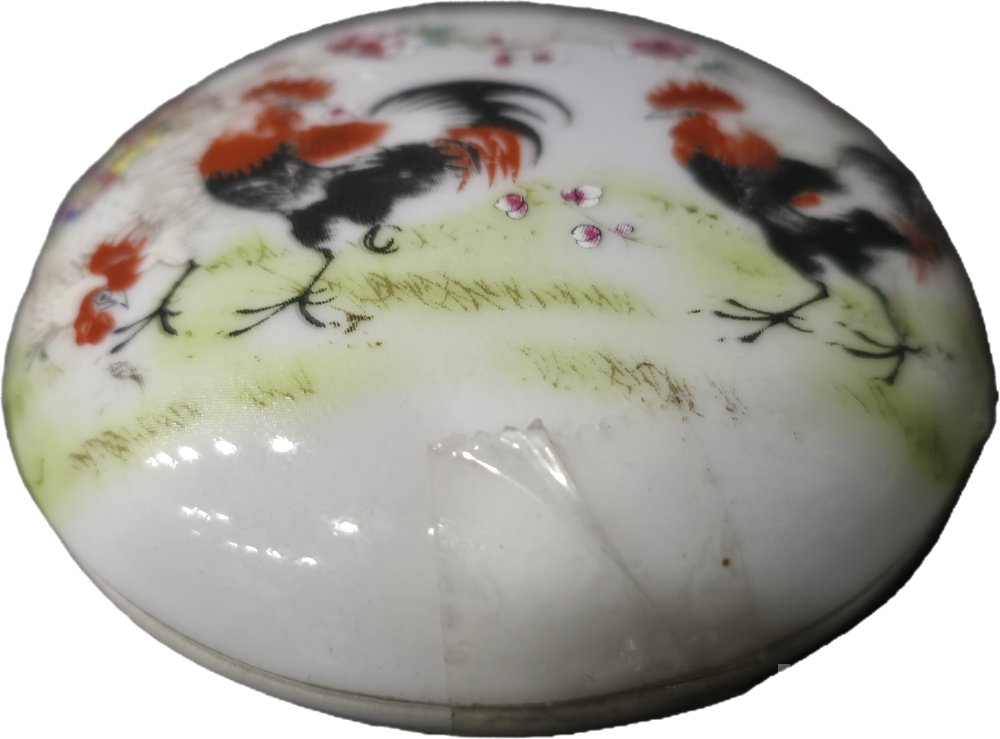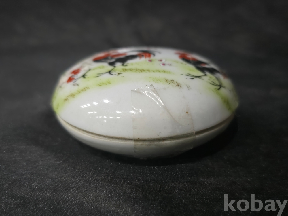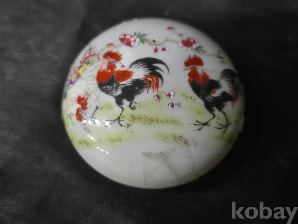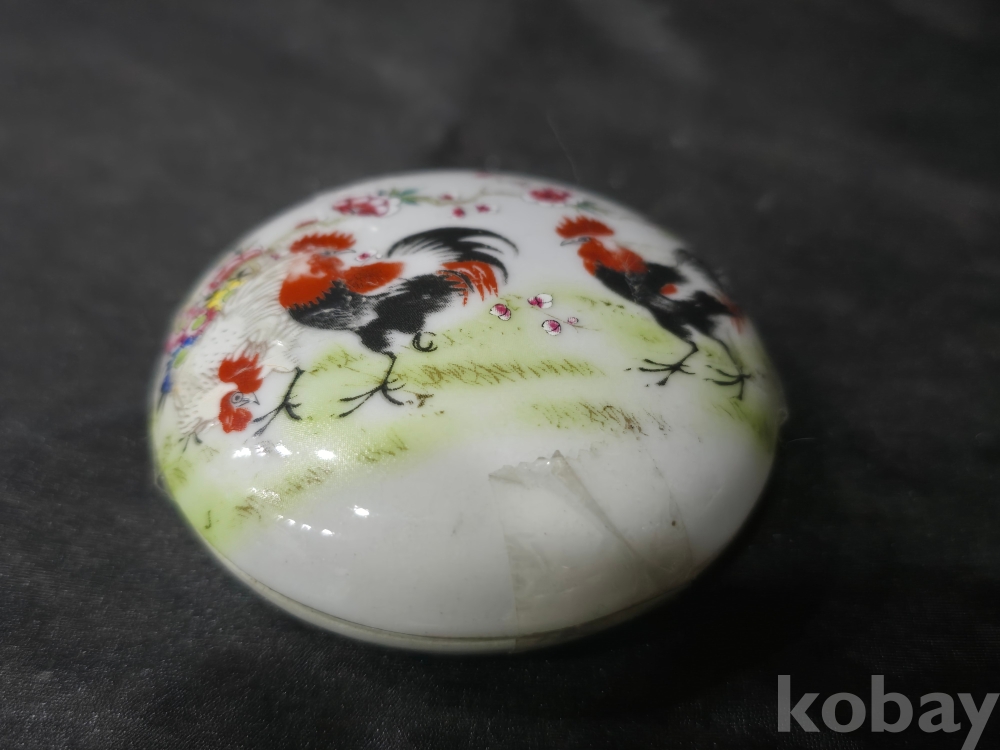 중국도자기 백자합 / 닭그림이 분채로 그려진 백자합