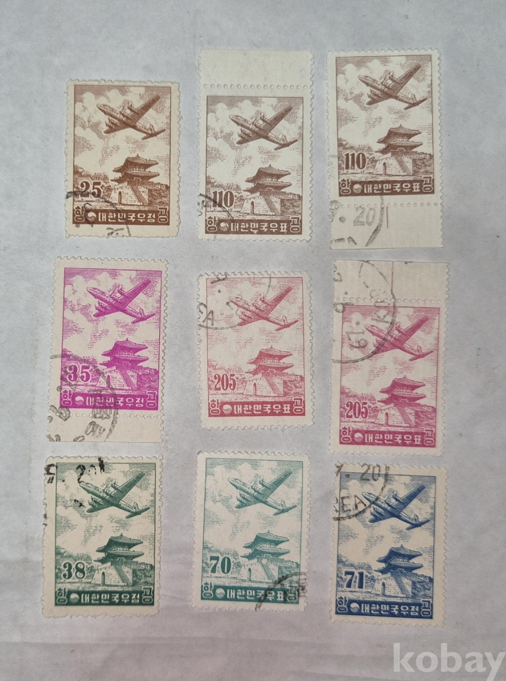 1950년대 발행된 항공우표 사용제 9매입니다.
