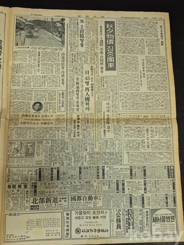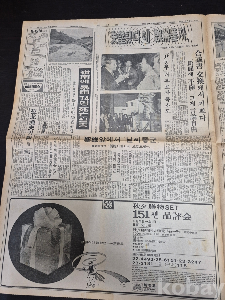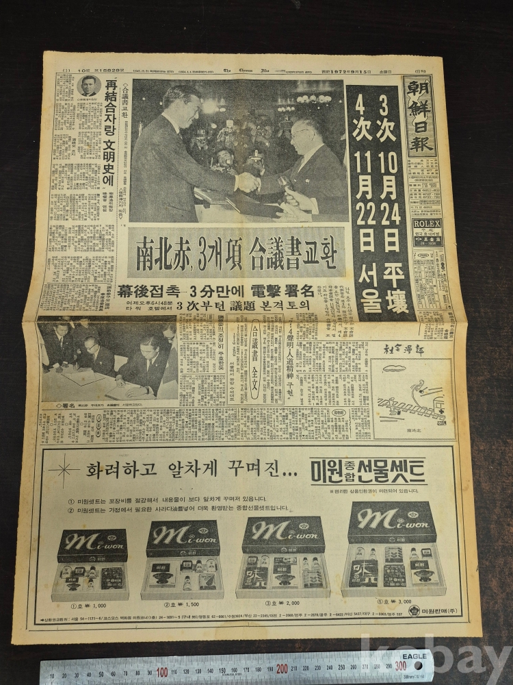 1972년 9월 15일 조선일보 남북 적십자 회담에서 남북한 3개항 합의문 1장입니다