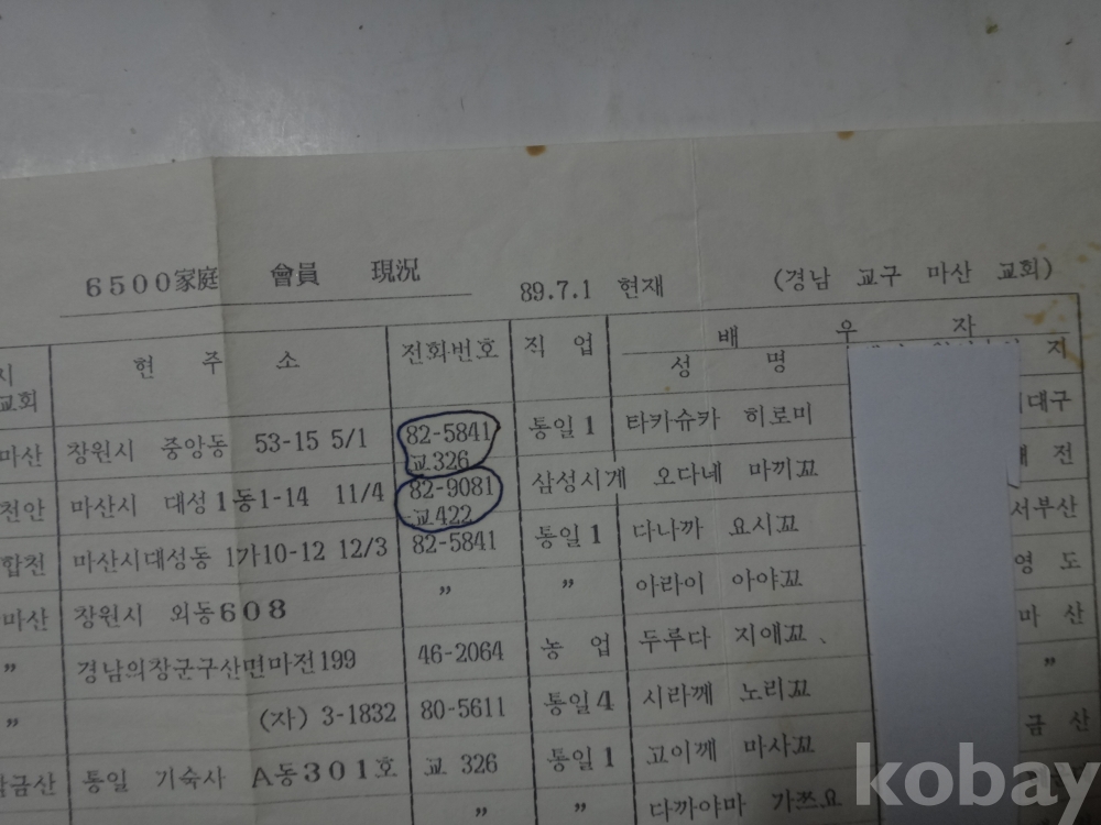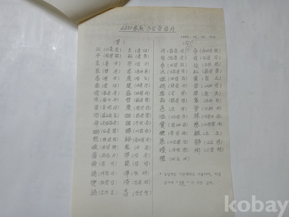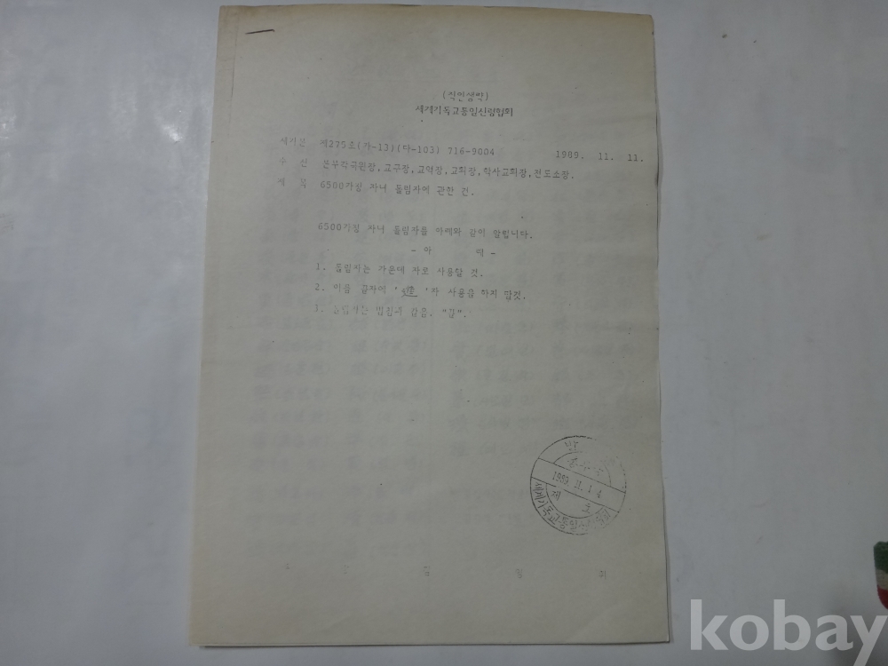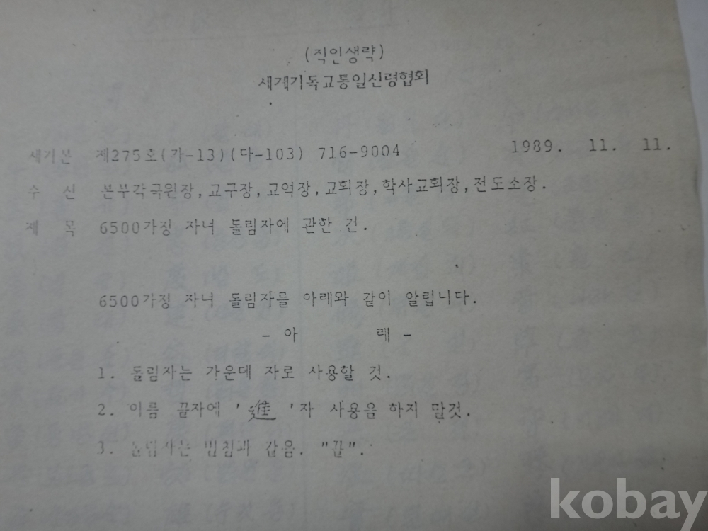 6500 가정 - 자녀 돌림자 알림 (1989년, 세계기독교 통일신령협회)