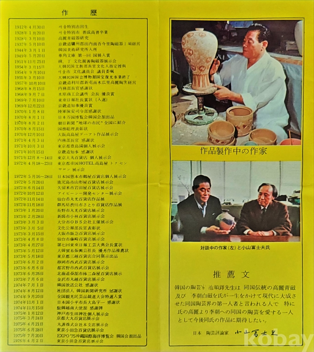 池順鐸 선생님의 이(경)력은 일본어판 이력서에 이력 예술성과 가치는 각 사이트에 자세하게 소개되어 생략합니다.