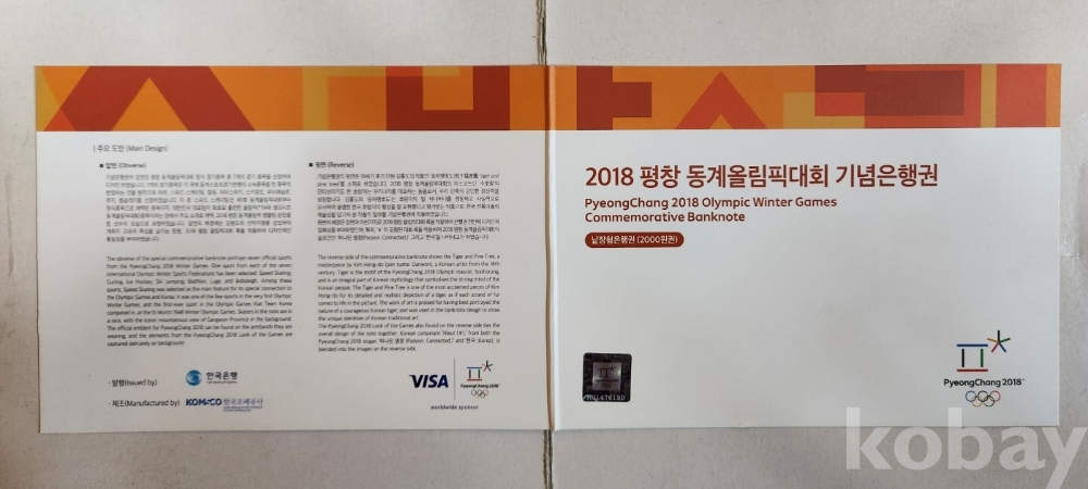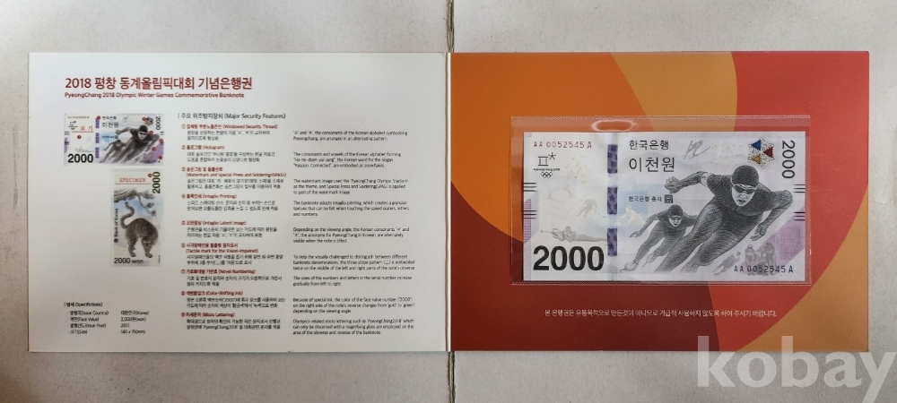 -대한민국 평창동계 올림픽기념 지폐첩 초판 AAA005포인트 입니다.