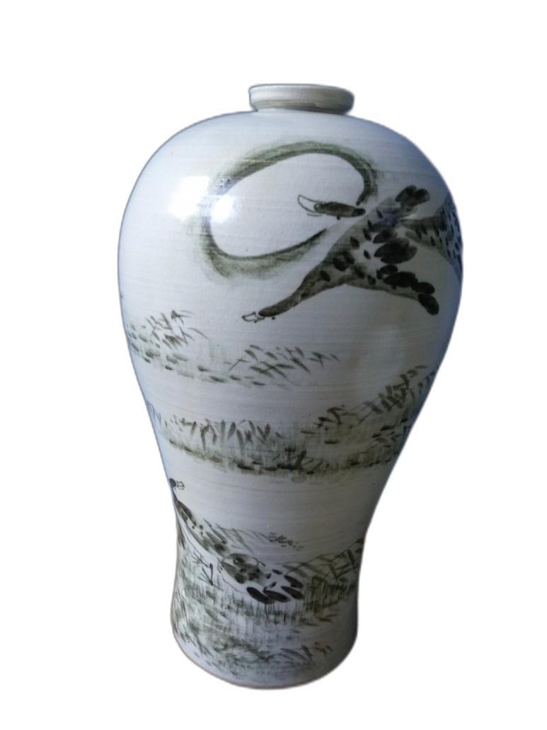 갈대 밭에 기러기들의 모습을 표현한 매병 도자기 입니다.