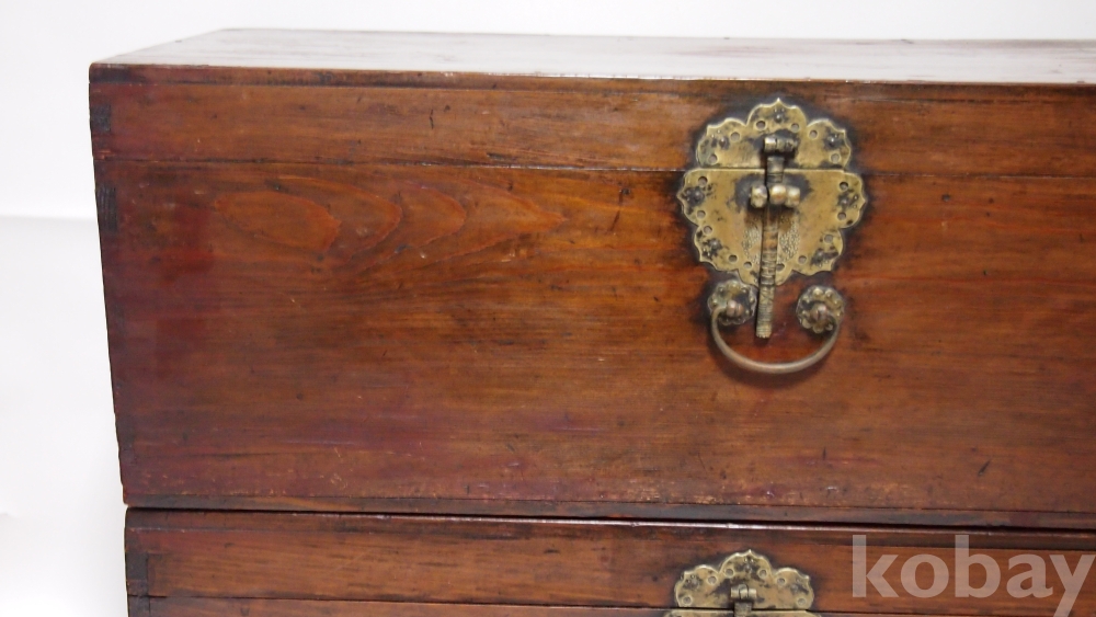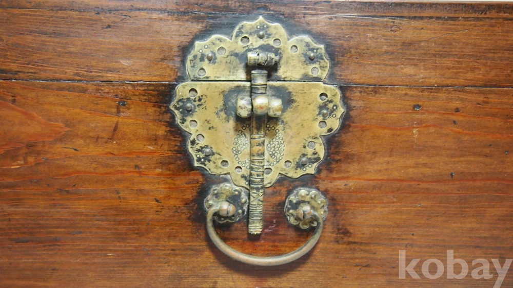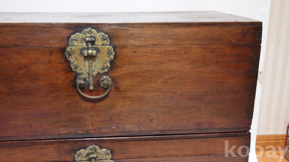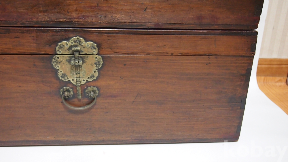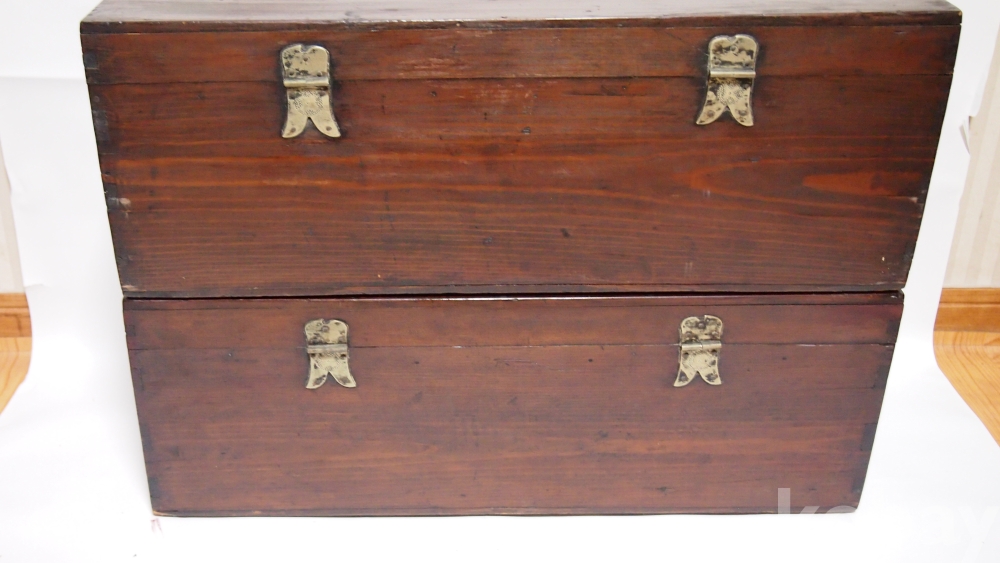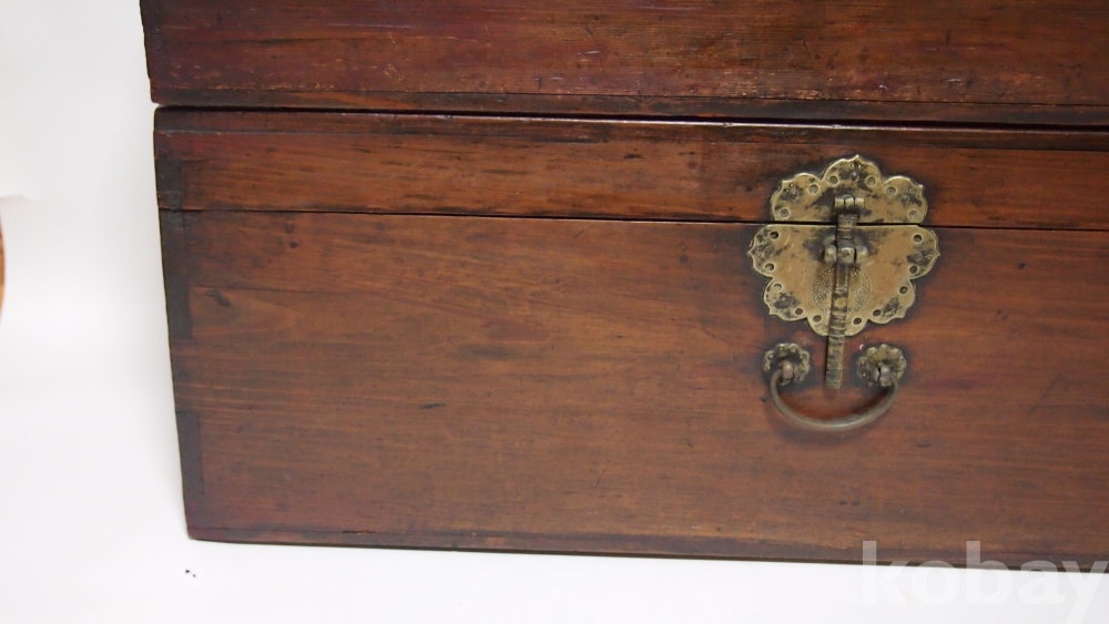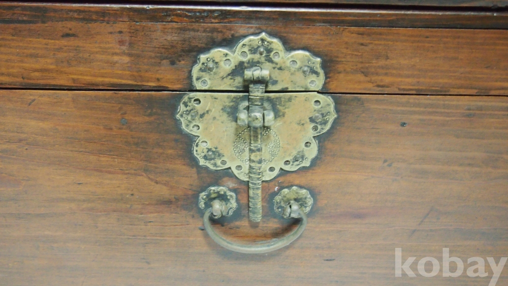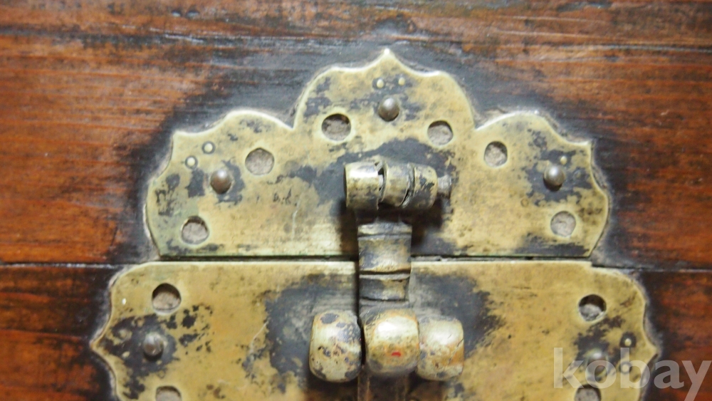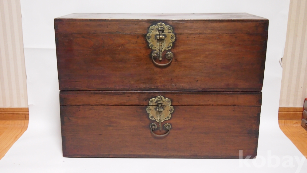 궤와 함은 그 이름이 분명 다른데도 생김새가 비슷해 혼동하기 쉽습니다. 이 둘은 모두 중요한 물건을 보관하는 수납함으로 역할은 같지만 궤는 상판이 반만 열리는 ‘윗닫이’이고 함은 상판 전체가 하나의 문으로 열고 닫힙니다. 함은 궤보다 더 중요한 재산을 보관하는 용도로 제작된 것으로 혼례함, 관복함, 문서함 등 그 쓰임새가 뚜렷했습니다. 귀중품을 보관하는 용도였던 만큼 이동이 쉽도록 나무 두께를 궤보다 얇게 하여 가볍게 만들고, 장식을 더 강하게 했습니다. 반드시 자물쇠가 달려 있는 것도 특징입니다. 함은 시간이 지날수록 부피가 커지고 한 쌍으로 제작되면서 2개를 쌓아놓는 ‘함농’의 형태를 띠기 시작했습니다.