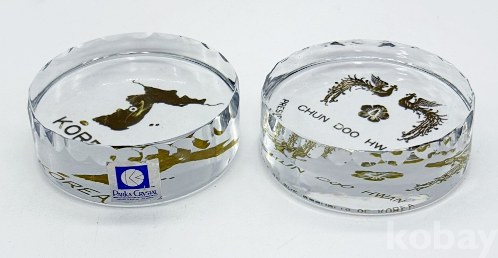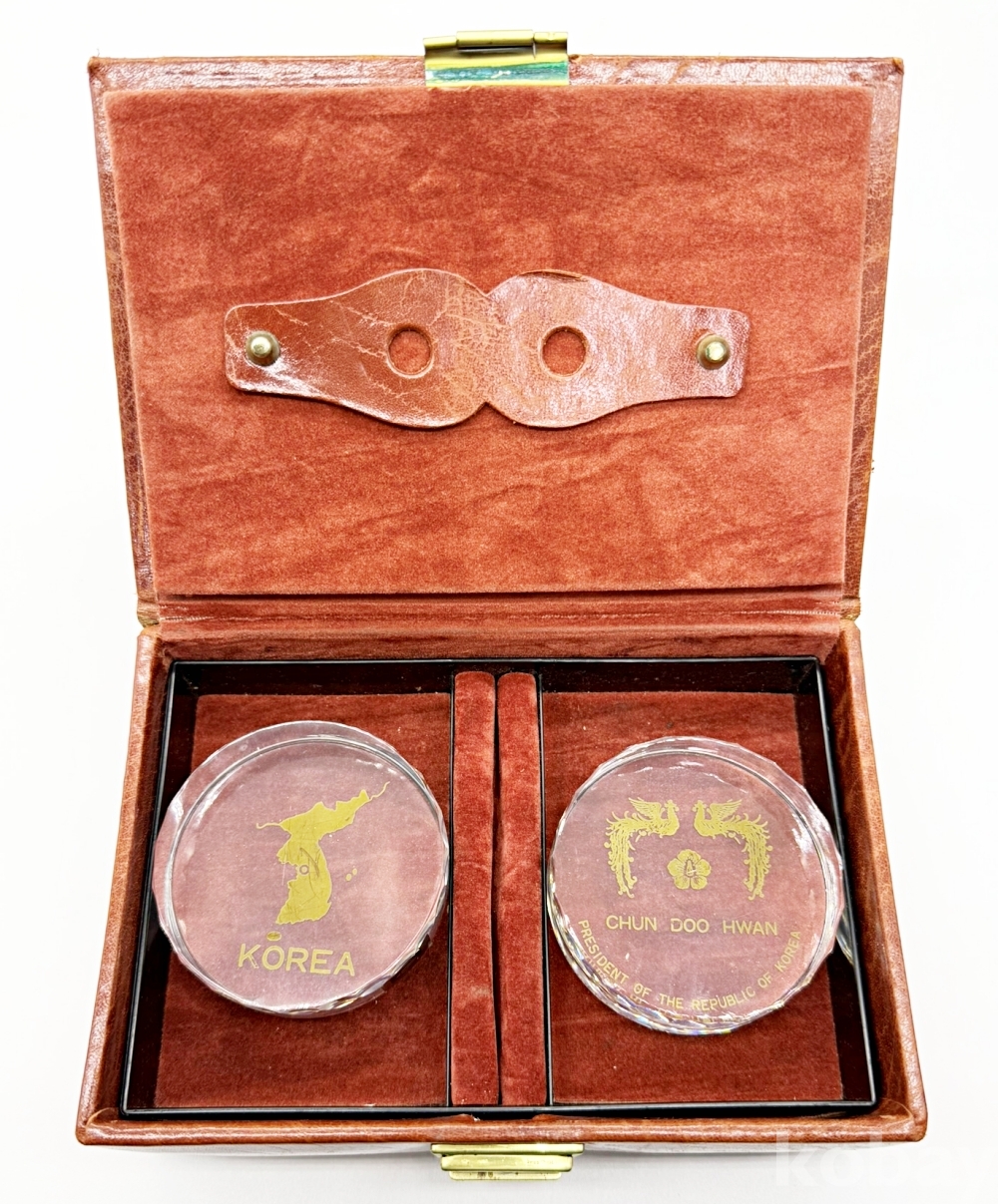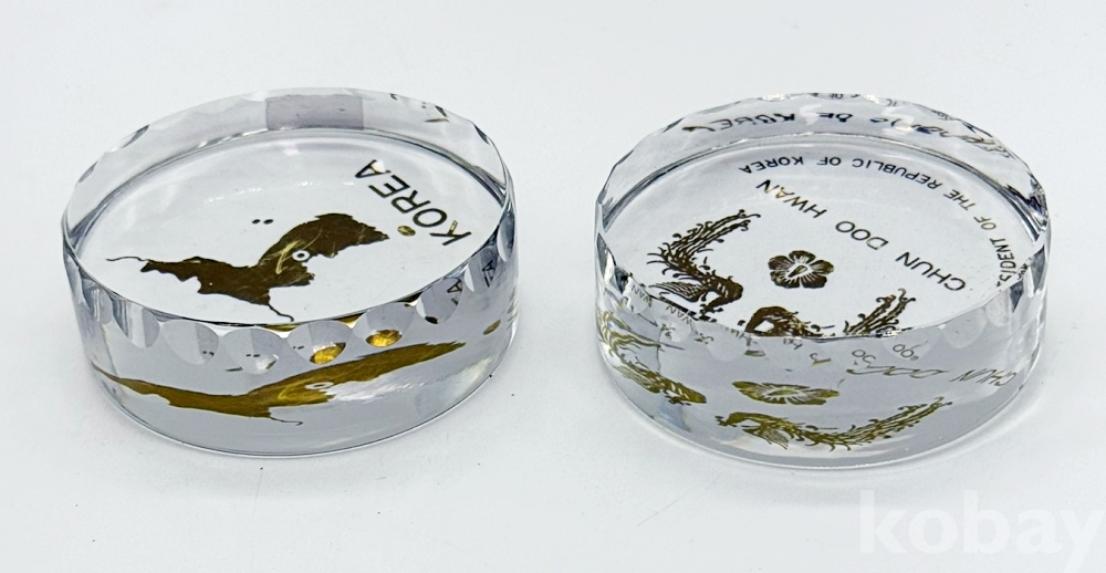 상품명 | [기념메달展] [4] 전두환 대통령이 증정하였던 크리스탈 ‘기념 문진’ 1set | ||