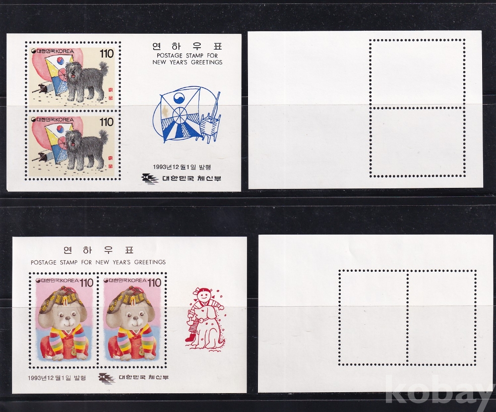 - 미사용 1994년용 연하우표 시트 2종 10장 모음 - 1993년 발행