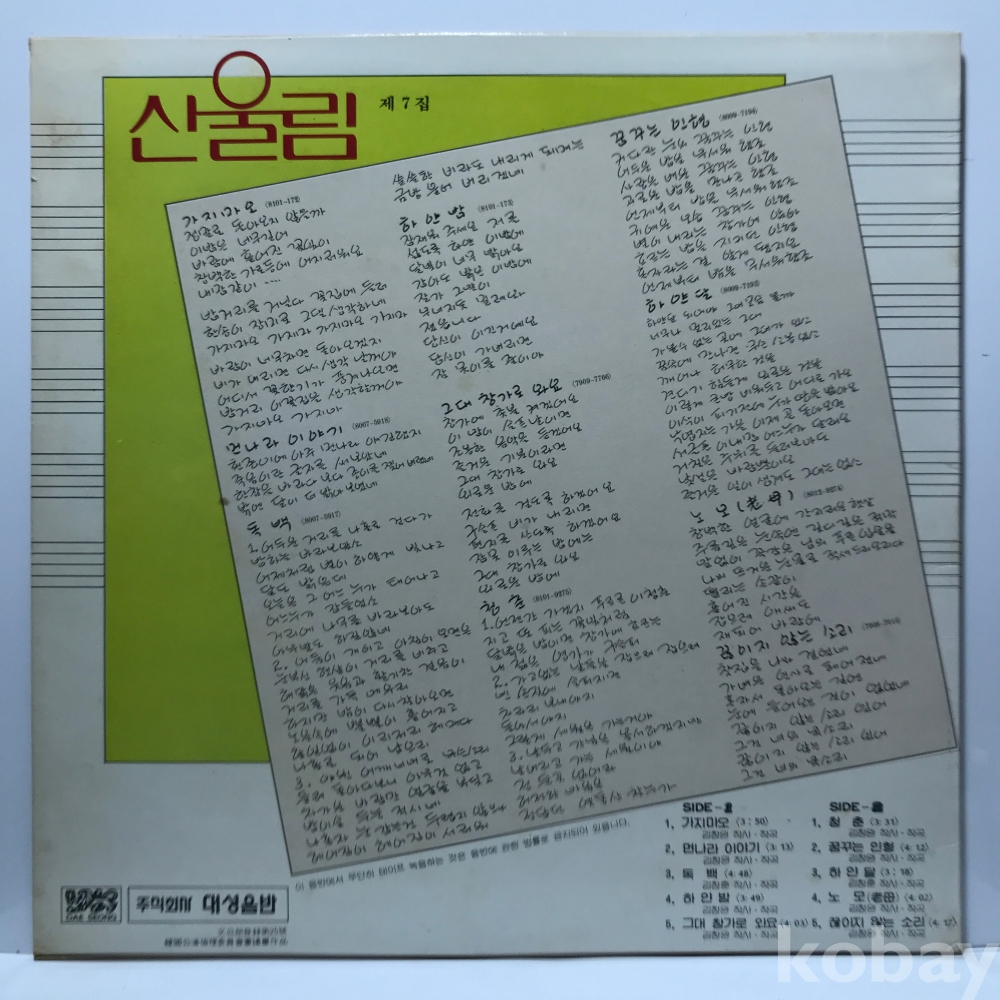 LP 35,750-92 산울림 7집 - 청춘 . 81 대성 자켓 EX+ 알판 EX+