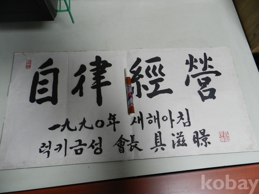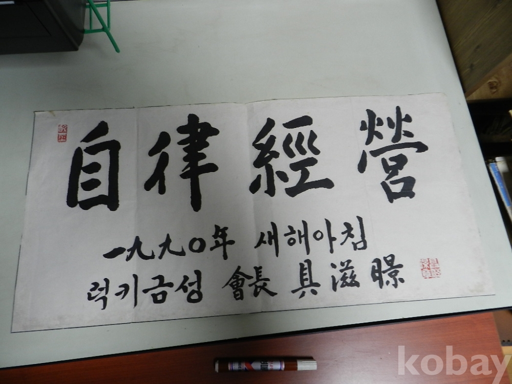 90년 액자에 넣어 걸던 럭키 금성 회장의 글씨 로 액자에서 분리 했습니다 금성사 전시에 활용하면 좋다고 합니다 이미지 참고 바랍니다
