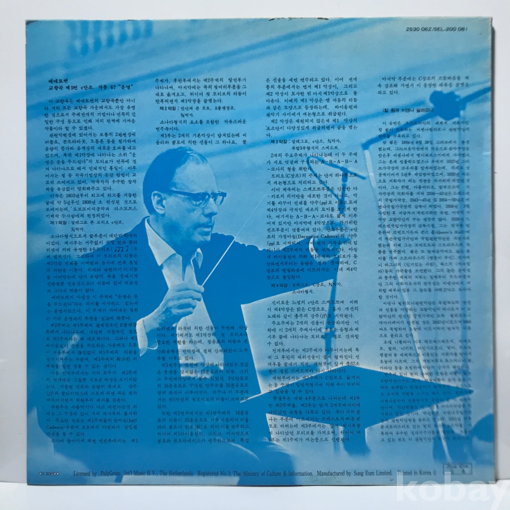 LP 36,650-58 베토벤 교향곡 제5번 운명 - 칼뵘 . 74 성음 자켓 EX+ 알판 EX