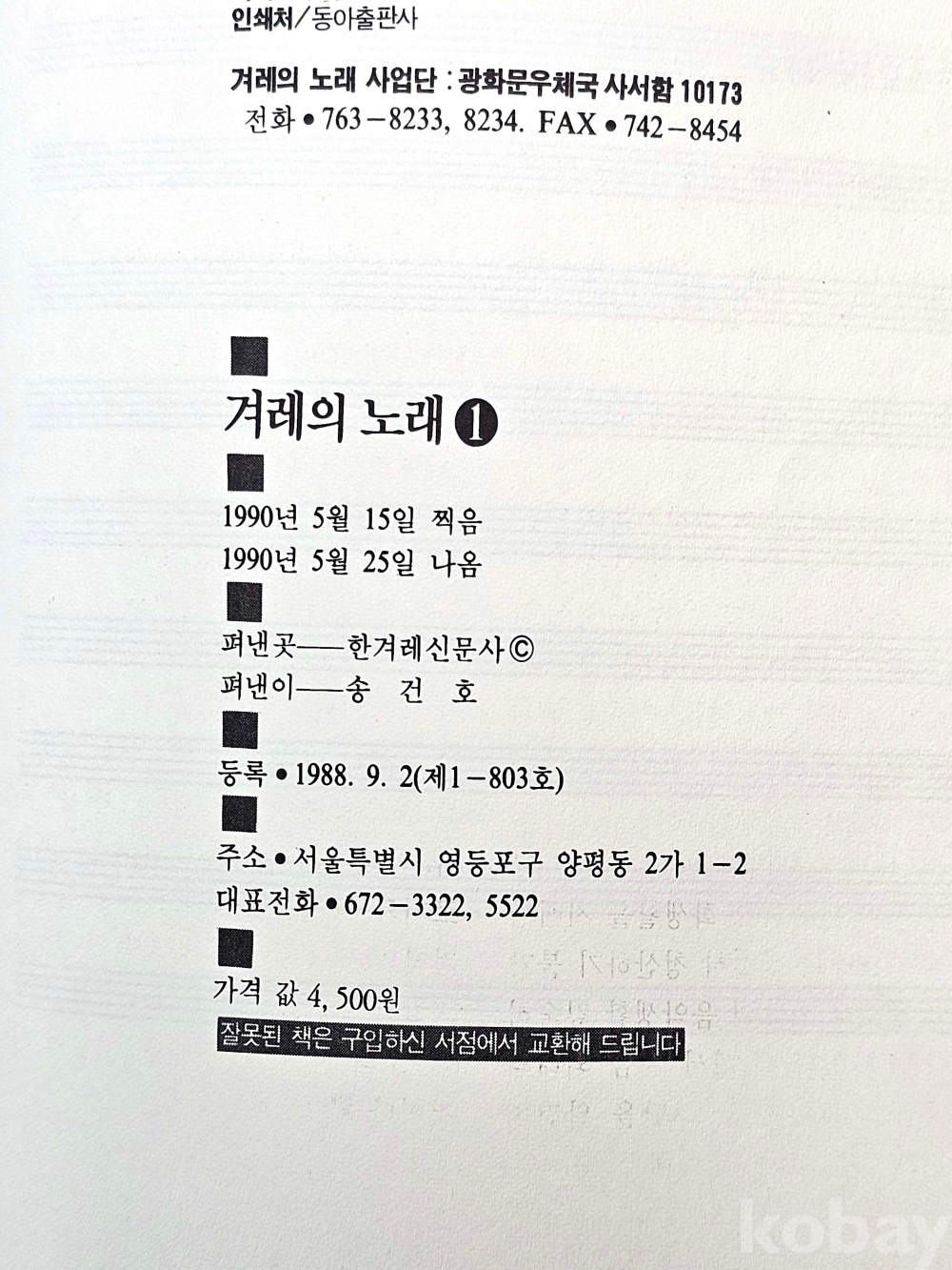 물 품 명 | 겨례의 노래1 / 겨례의노래사업단 편 / 1990년 초판 / 한겨례신문사 |
