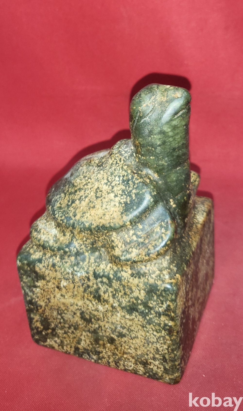 청옥(靑玉) 으로 만든 거북문양 사각 큰 도장 조각품입니다,