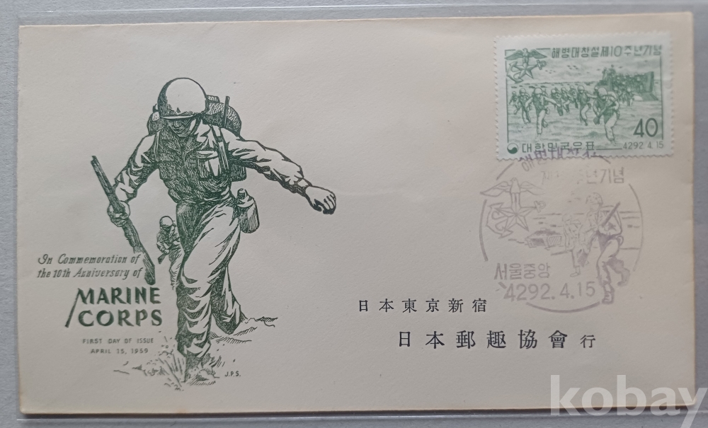 1959년 해병대 창설 10주년 기념 일본우취회 발행 초일봉투