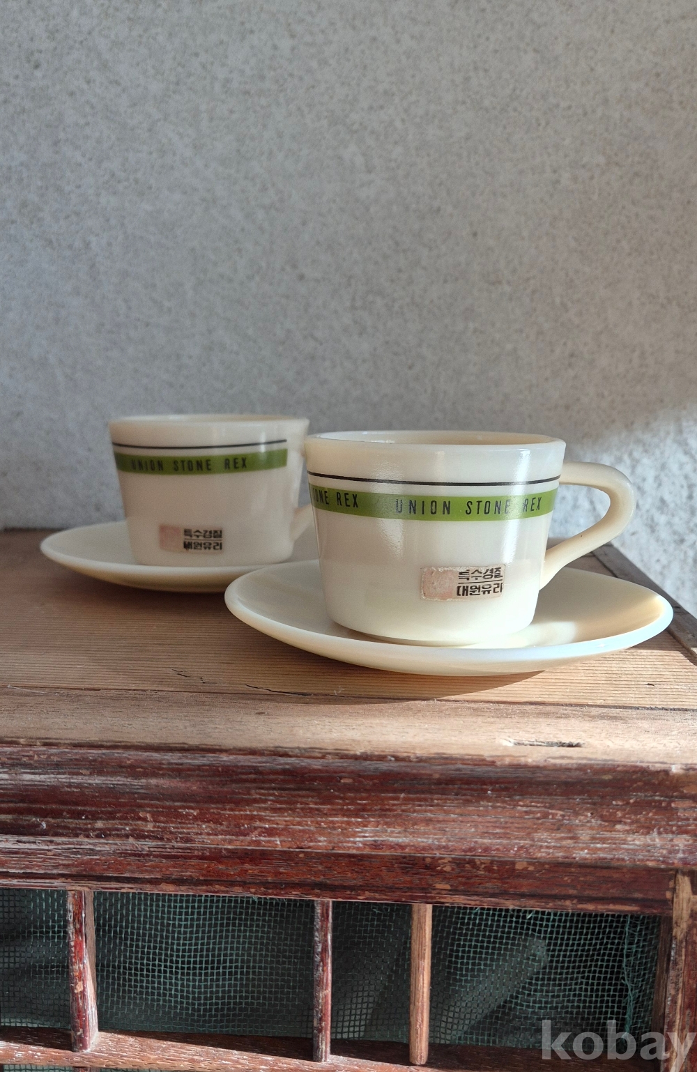 은은한 크림빛이 감도는 클래식한 밀크글래스 커피잔 세트(2조) 입니다.