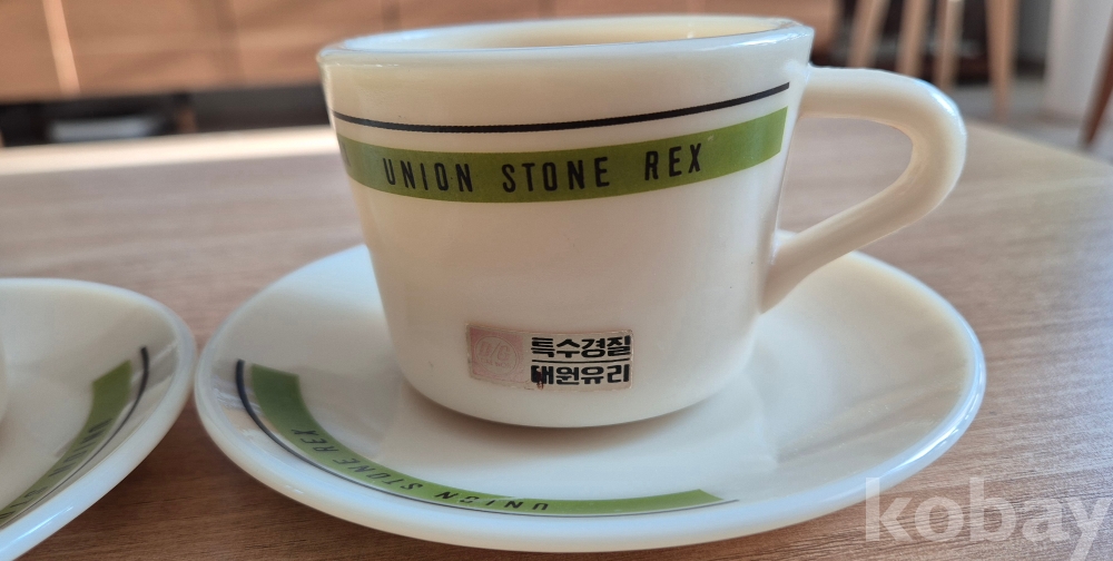 컵 앞면에는 당시 사용되던 대원유리 / 특수강화 백열유리 스티커가 그대로 남아 있어