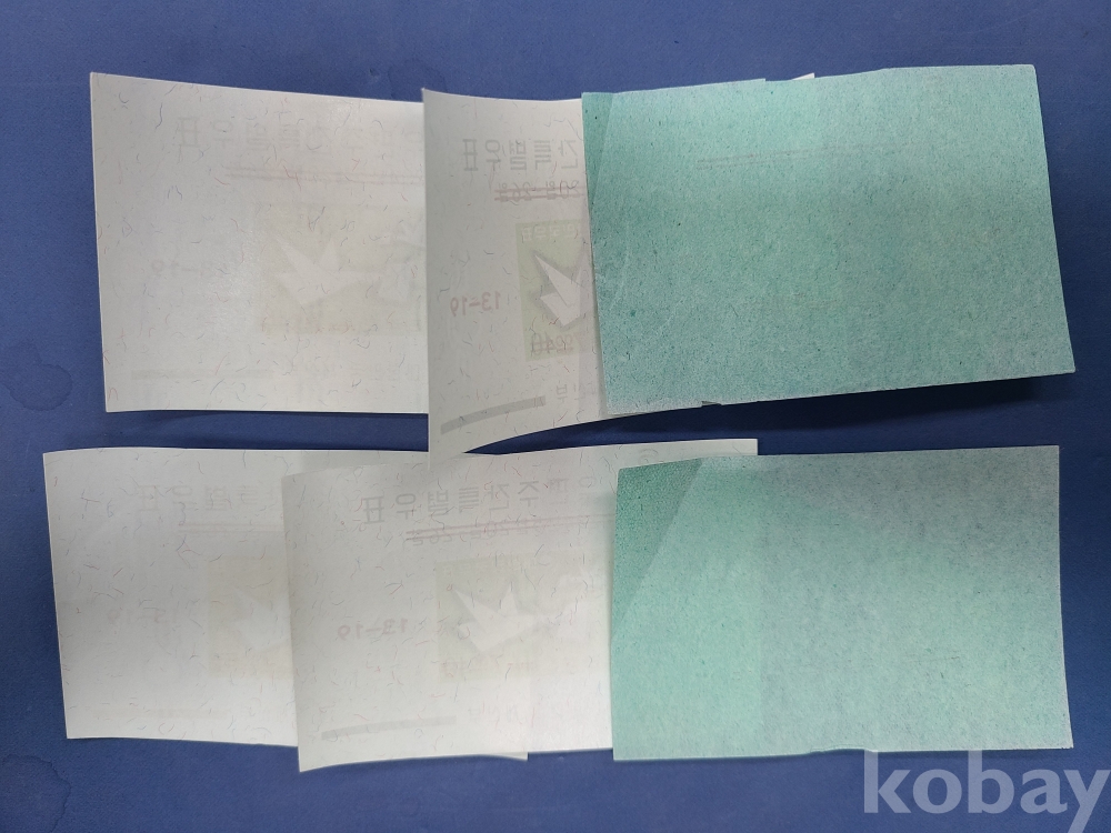 ** 우표사이 간지(間紙)에 가쇄를 하였음.