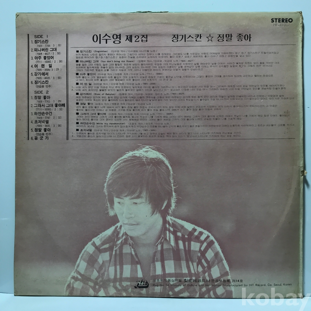 | 자켓상태 | EX : 약간의 마모, 모서리 찢김 존재 | 음반상태 | EX : 재생에 영향 없는 가벼운 기스 존재 | 발매정보 | 알수없음 | 가사지여부 | 무 |
