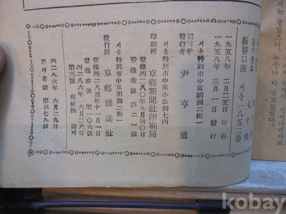 | 제조국 | 한국 | 연대 | 1945년~1959년 |