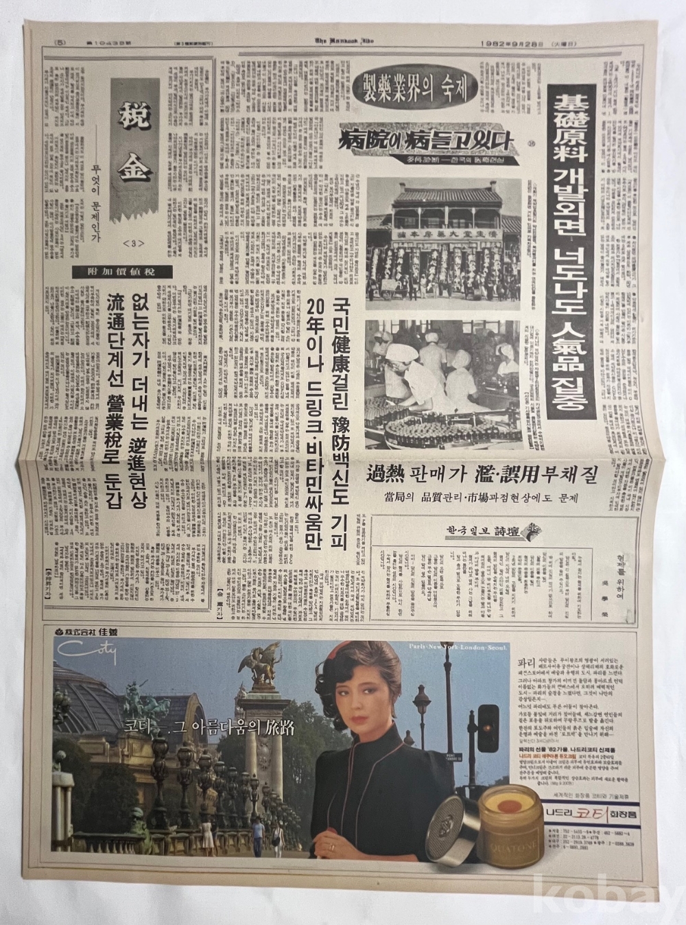 화장품 광고가 실린 한국일보 낱장입니다.