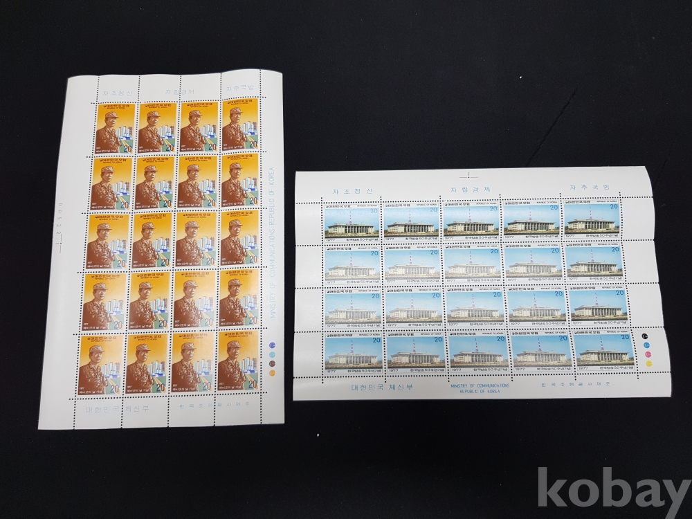 - 미사용 1977년 한국방송 50주년 기념 등 미사용 전지 2종 모음