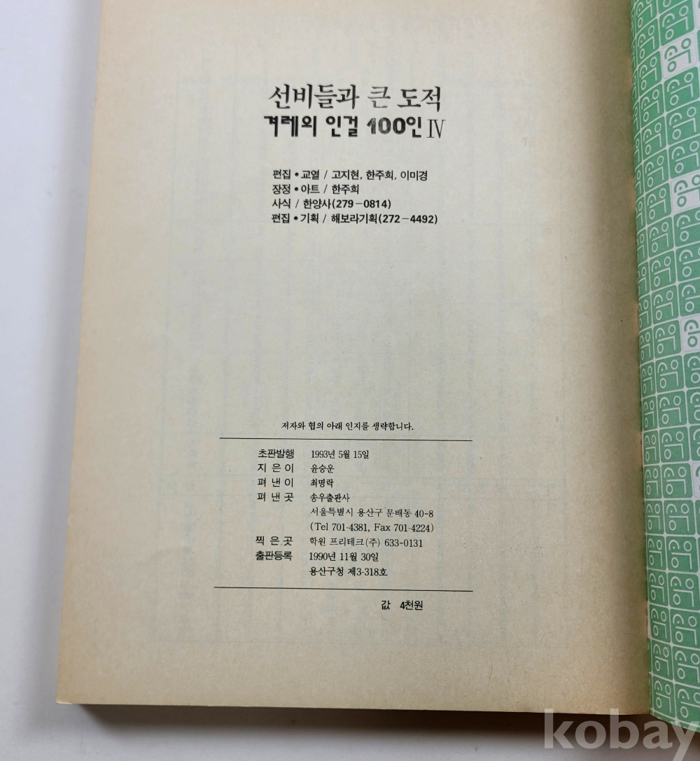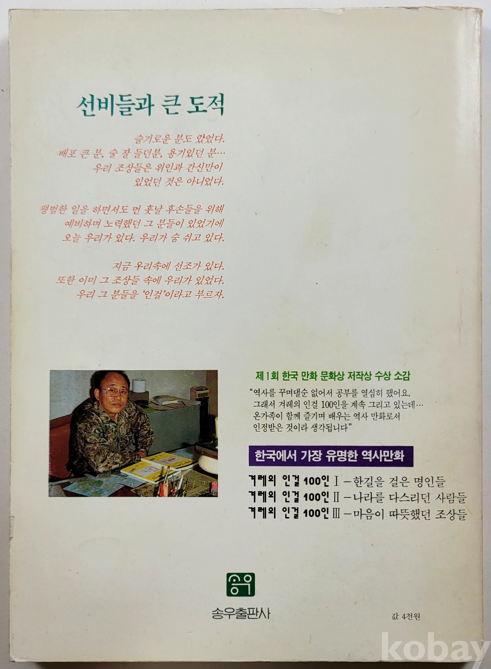 물 품 명 | 윤승운 / 선비들과 큰 도적 : 겨레의 인걸 100인(4) 완결편 / 송우출판사기획만화(9) / 1993년 초판 / 송우출판사 |