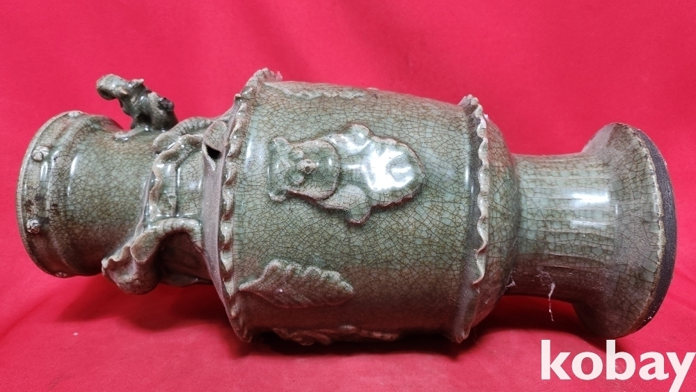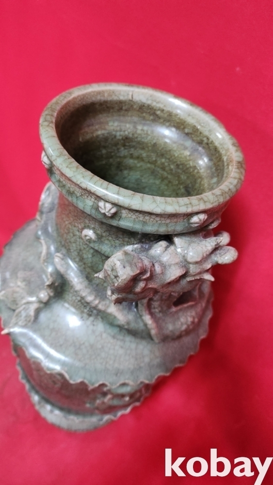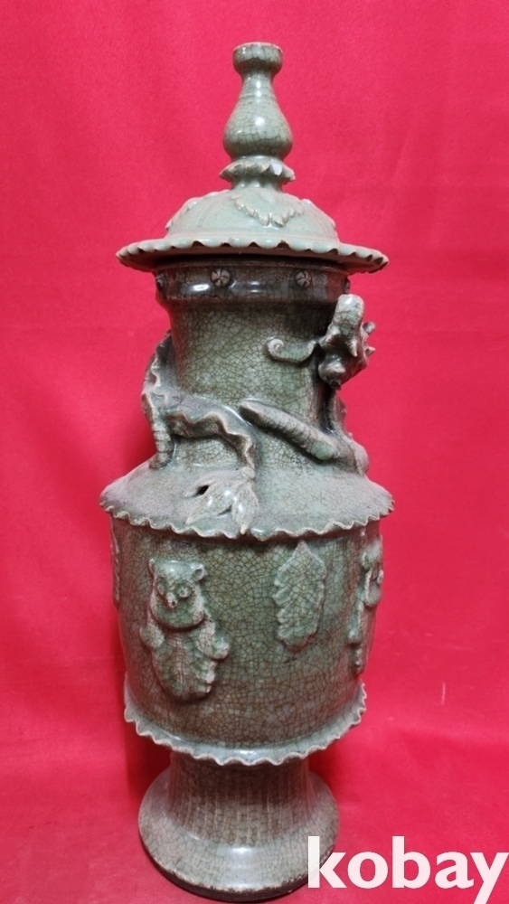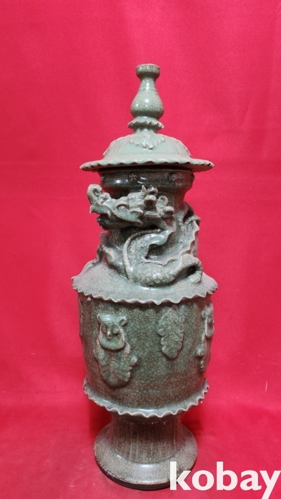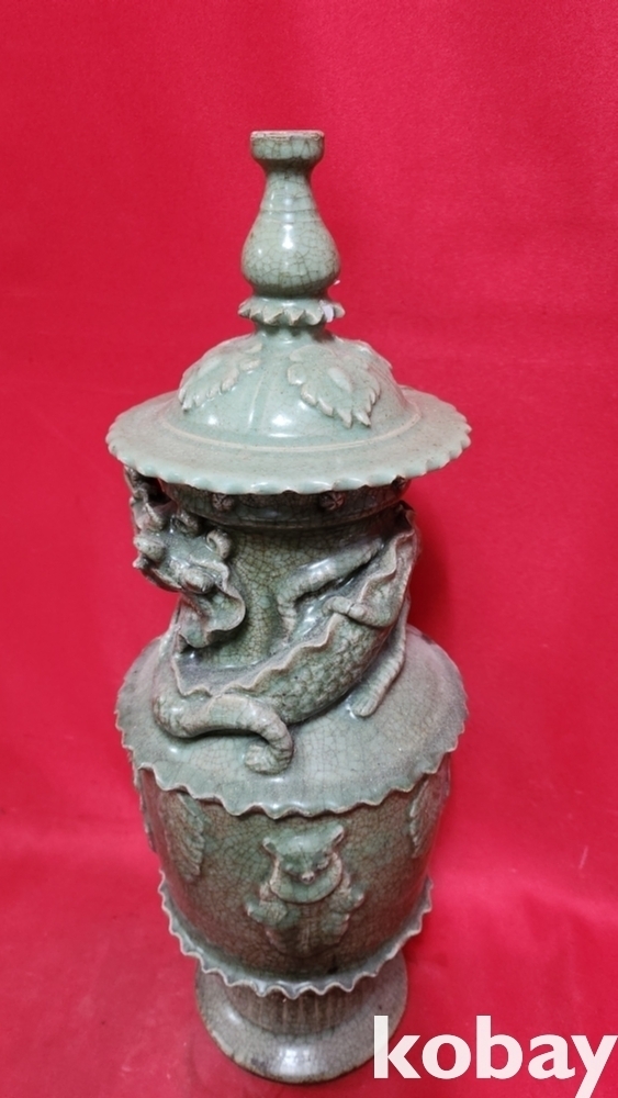 중국의5대 명요(名窯)용천요(龍泉窯) 첩화(貼花) 용(龍)문양 유개병입니다,