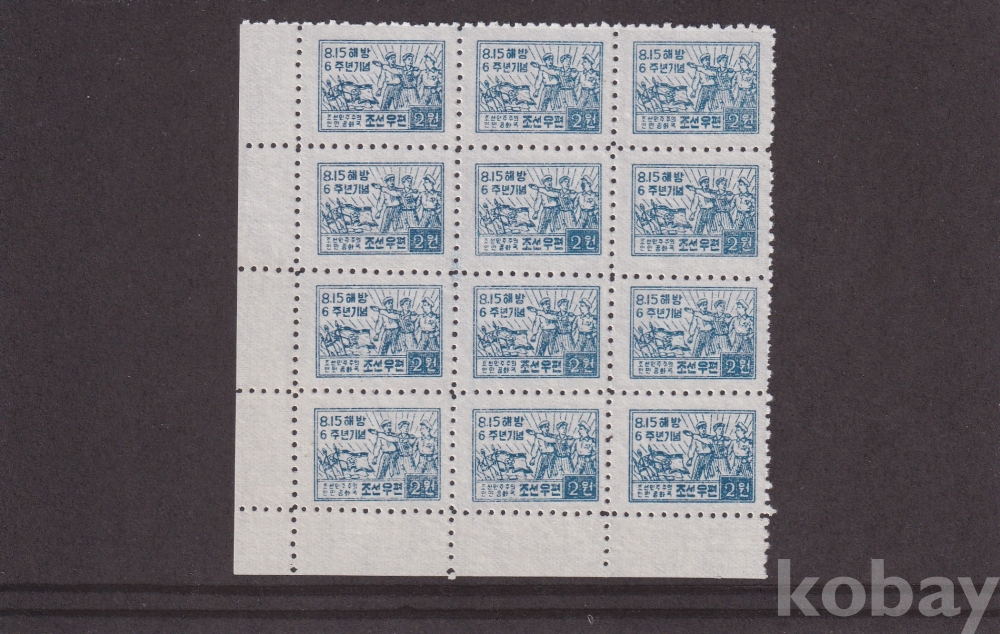 [윗동네 미사용 우표 모음展] - 8.15해방 6주년 기념 조선 및 중국 병사 2원(12장) 블럭