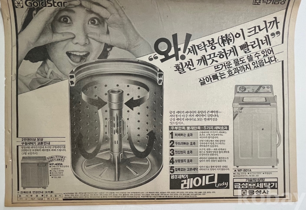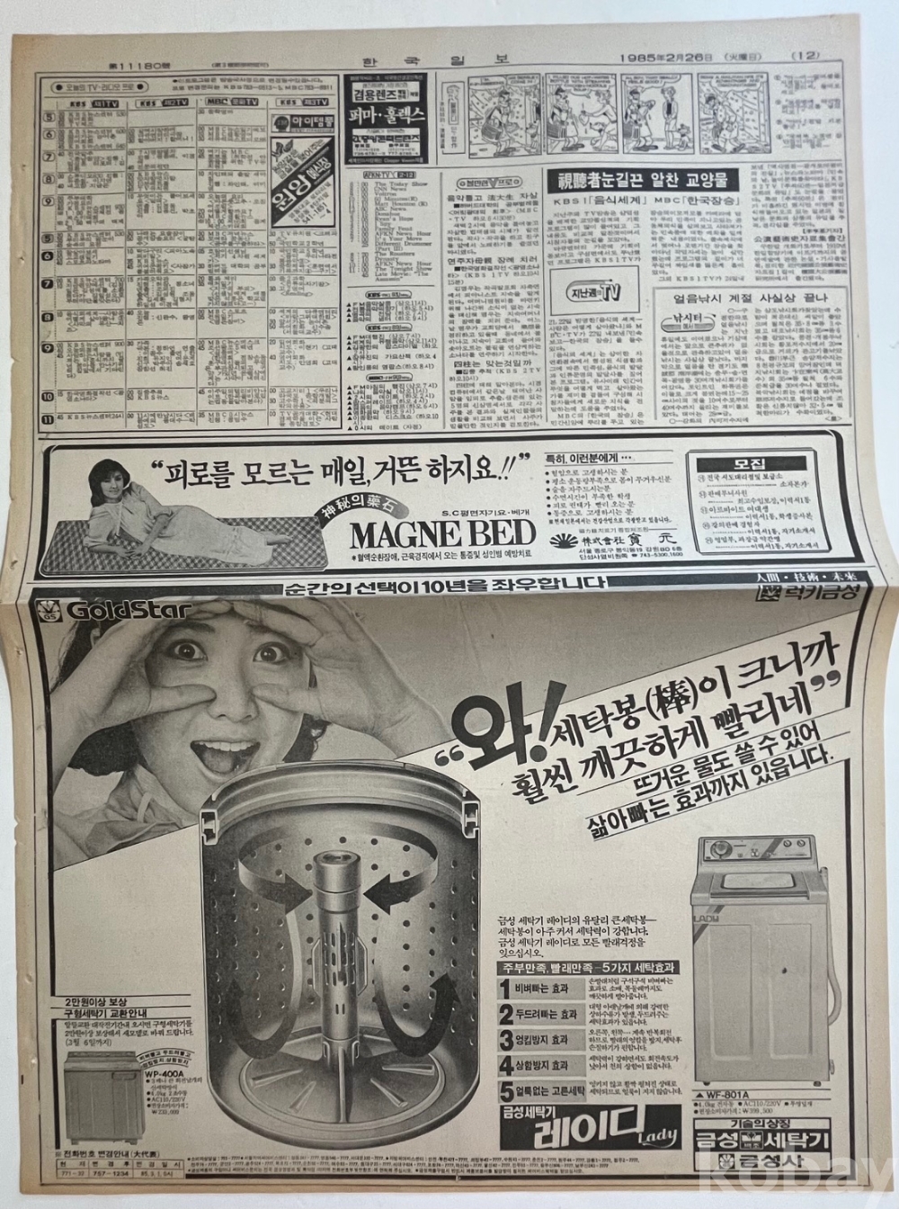 금성세탁기 광고가 실린 1985년 한국일보 낱장입니다.