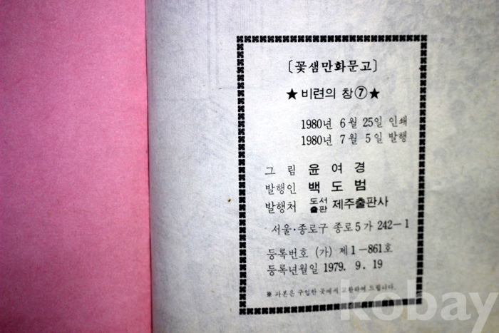 (만화) 비련의 창 : 교장선생님의 고백 편 - 윤여경 글.그림 / 1980년 / 제주출판사 발행