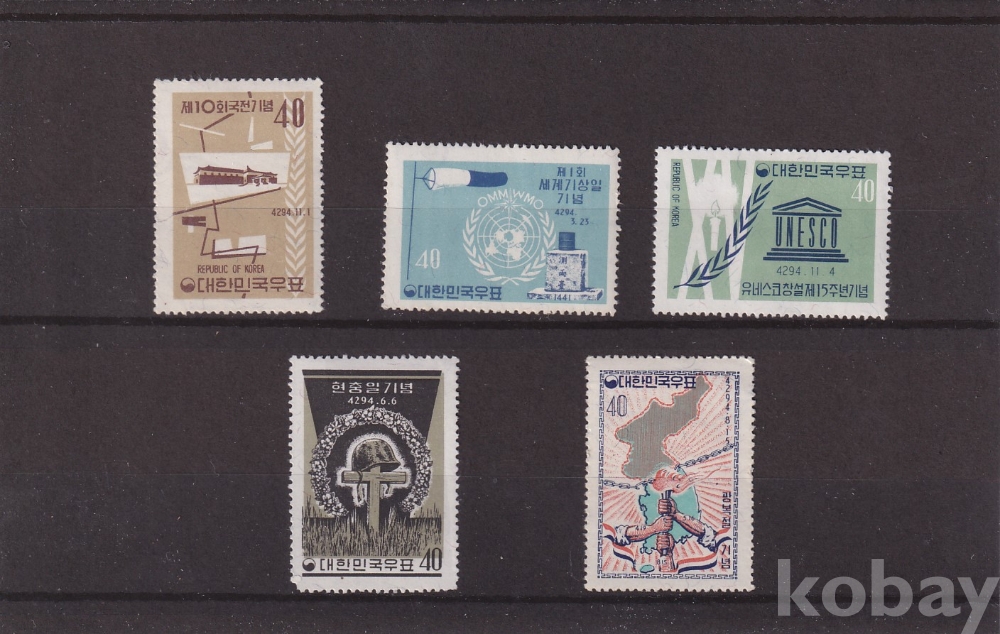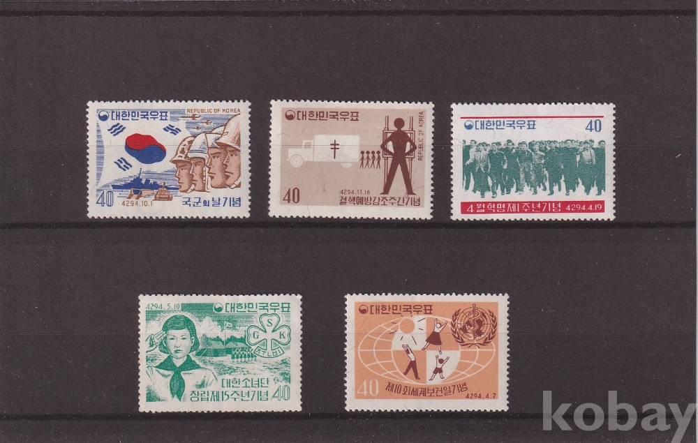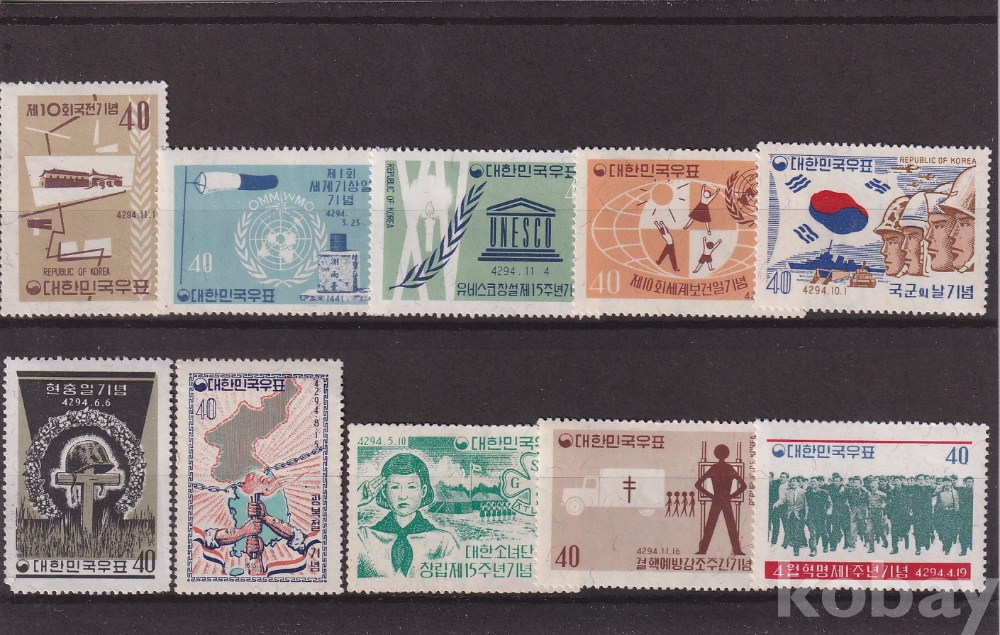 - 미사용 4294(1961)년 기념우표 10종 모음 / 현충일기념, 대한소녀단 등