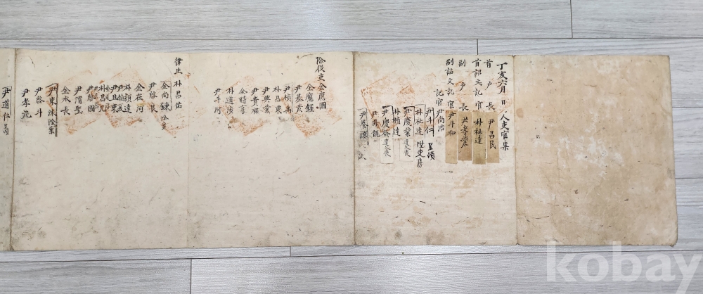 조선시대 경북 청송군 벼슬의 직분과 성함이 기록된 인리관안 관문서 8면 절첩 입니다 첫페이지부터 마지막 페이지까지 많은관도장이 찍혀 있습니다 상태 양호합니다