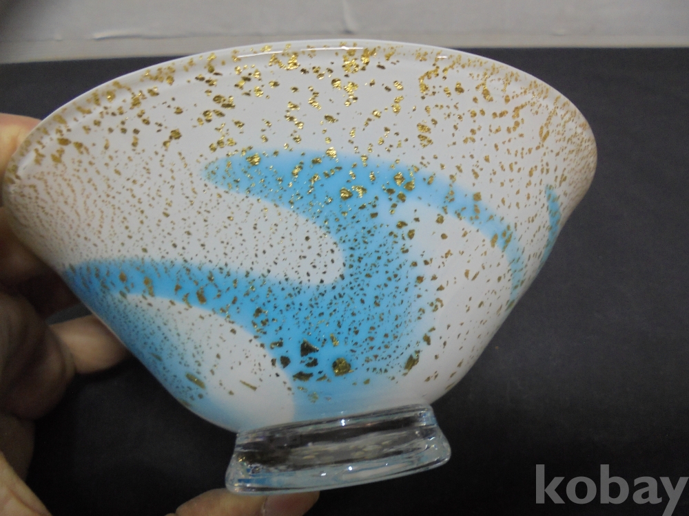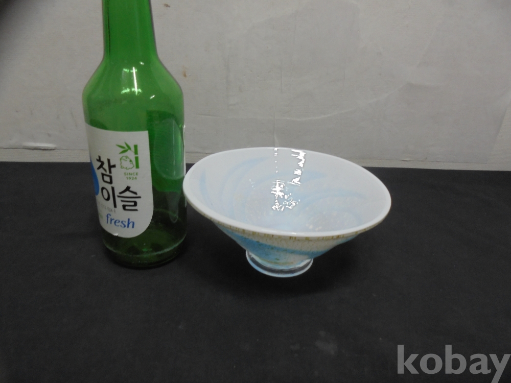 기벽이 툭툭하며 느낌이아주 정감이가는 특이한 유리다완입니다