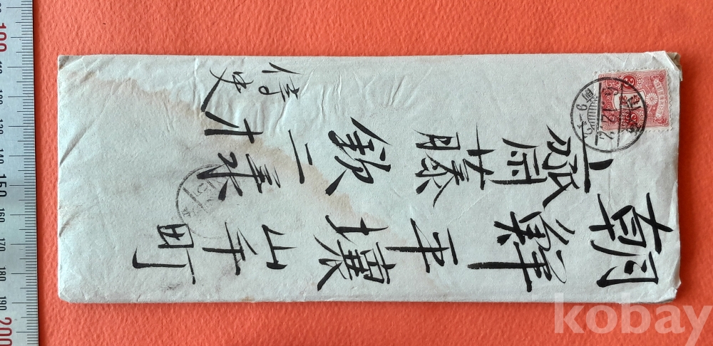 일제강점기 시대 일본 우표가 첩부된 실체봉피 입니다.