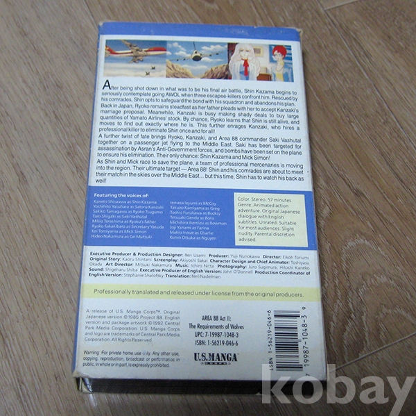 지옥의 외인부대 / 에어리어88 (AREA 88) 만화영화 Act 2 VHS 비디오 테이프 (1985년)