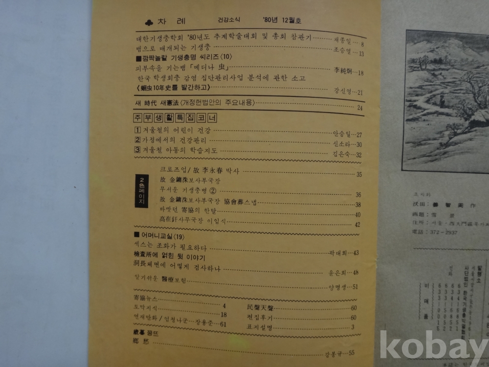 건강소식 - 뱀으로 매개되는 기생충, 피부속을 기는 뱀 "메디나 충", 새시대 새헌법 등 (1980년, 한국기행충박멸협회)