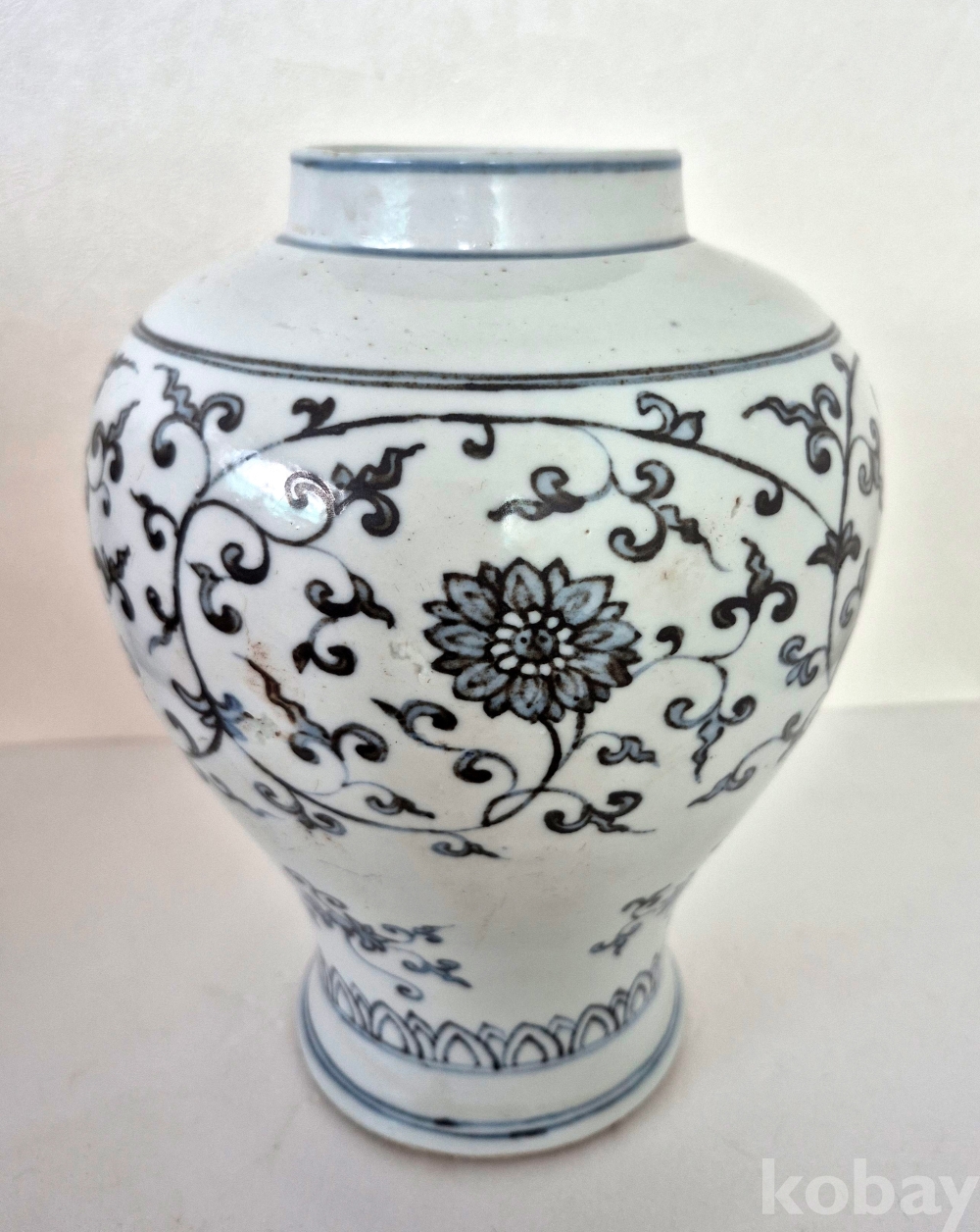 조선 중기에 강진에서 나는 土靑으로 그려진, 청화 색은 좀 어둡습니다만, 매우 희귀하고 아름다운 백자 입니다. 특히 백자의 백색 피부가 정말로 매끄럽고 하얗습니다. 사진으로 가장 표현하기 어려운