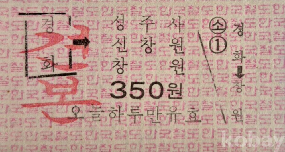 신형 비둘기호 승차권 경화-창원 복수권/일반 견본권입니다.