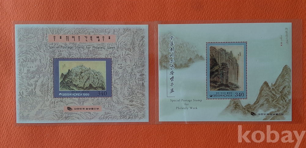 1999년, 2000년 우표 취미주간 소형시트 2종 입니다.