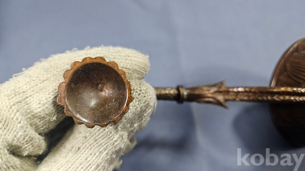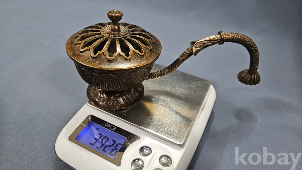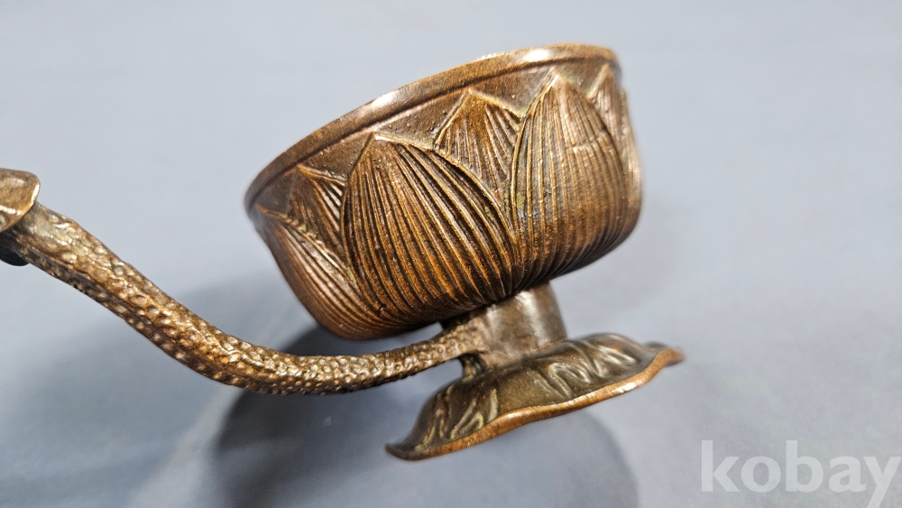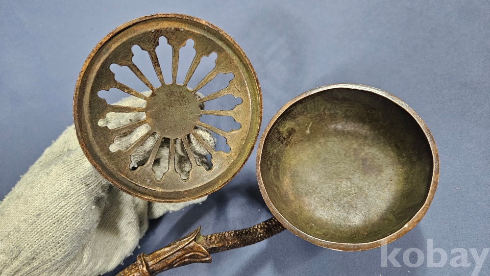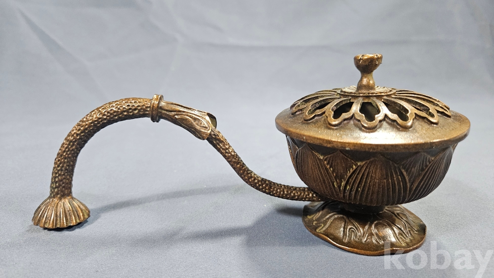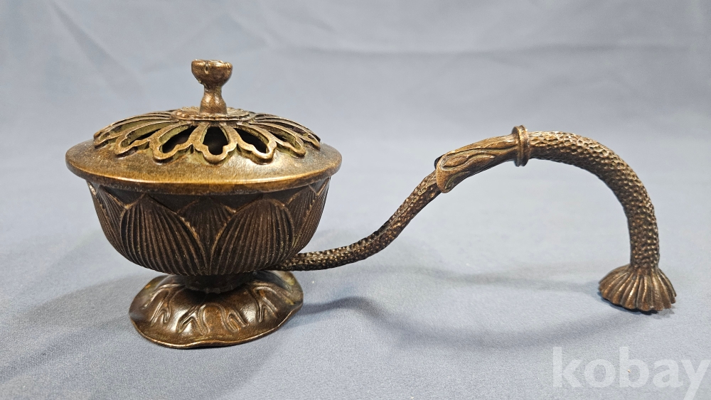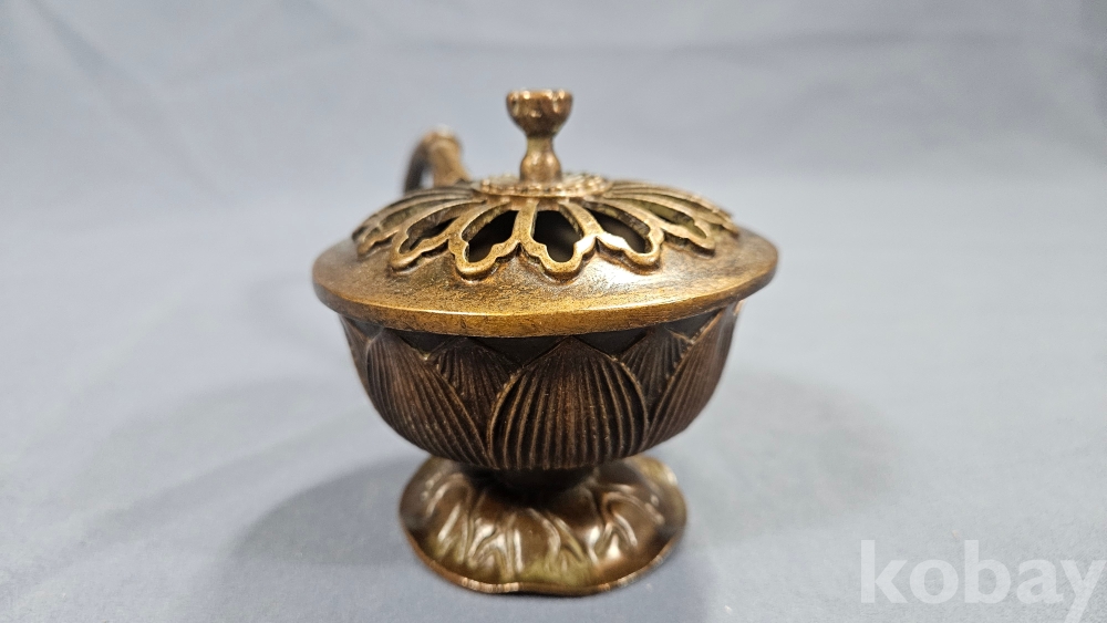 연꽃 모양의 형태와 손잡이가 아주 멋스러운 향로입니다.