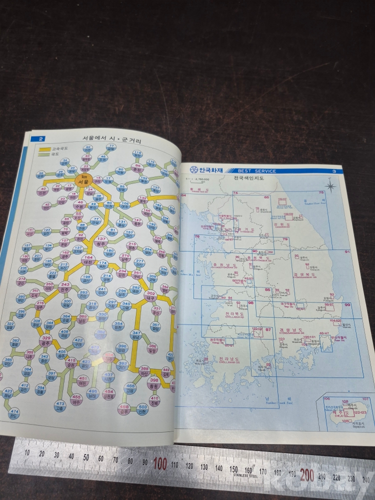 1990년 안국 화재 발행분 전국 도로 관광 안내지도 15*22*1