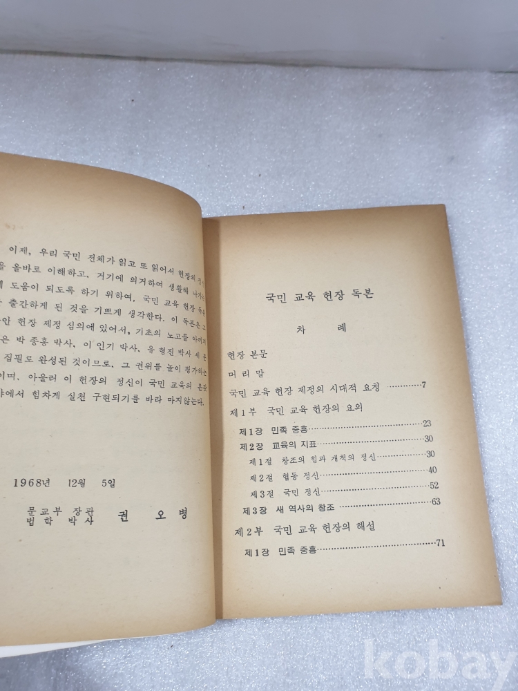 {천원경매}11-2330 국민 교육 헌장 독본 책(5권이상 묶음배송불가)