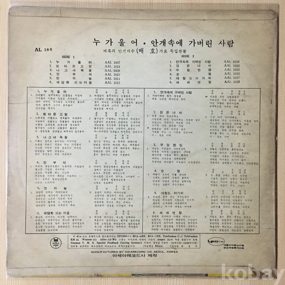 배호 가요특집 선물 - 누가 울어/안개속에 가버린 사람