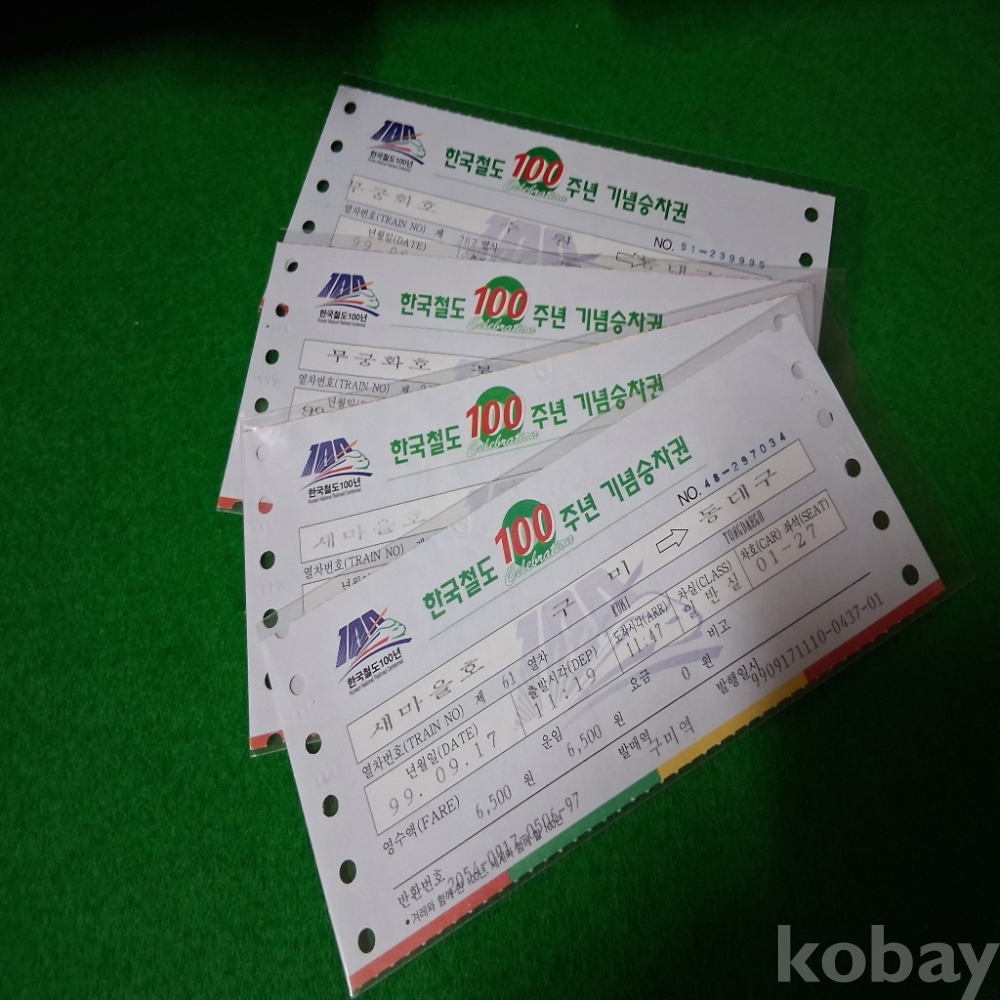 한국철도 100주년기념 새마을,무궁화,승차권 각2매 사용제