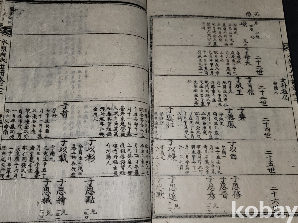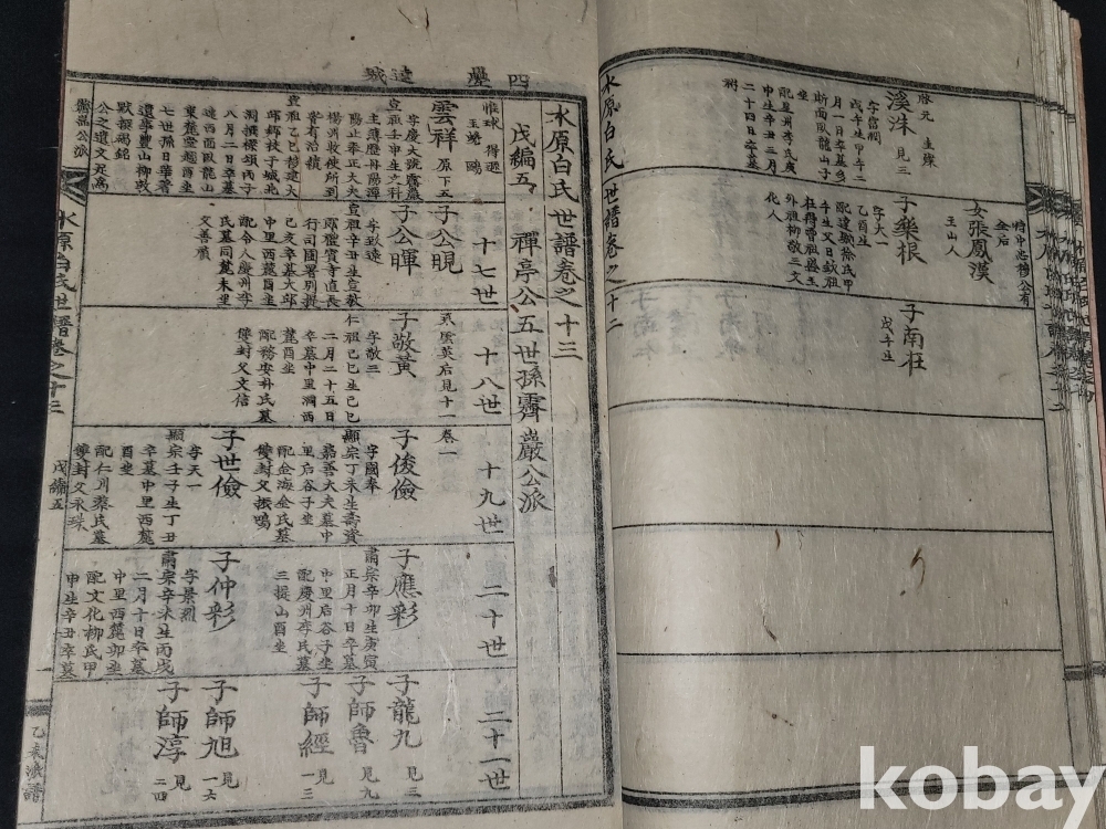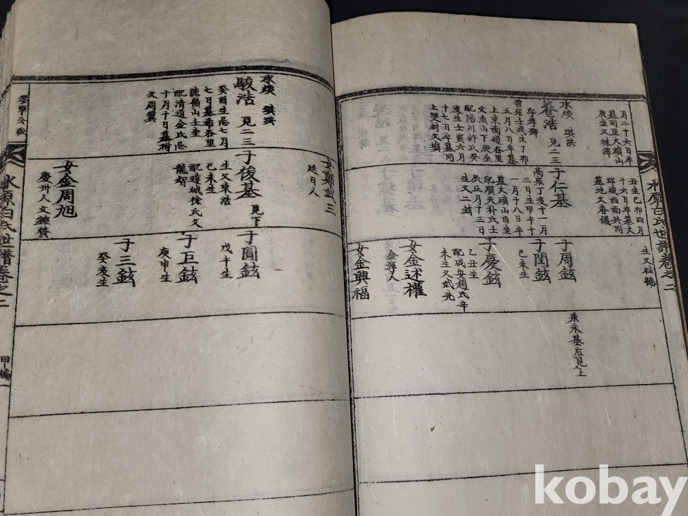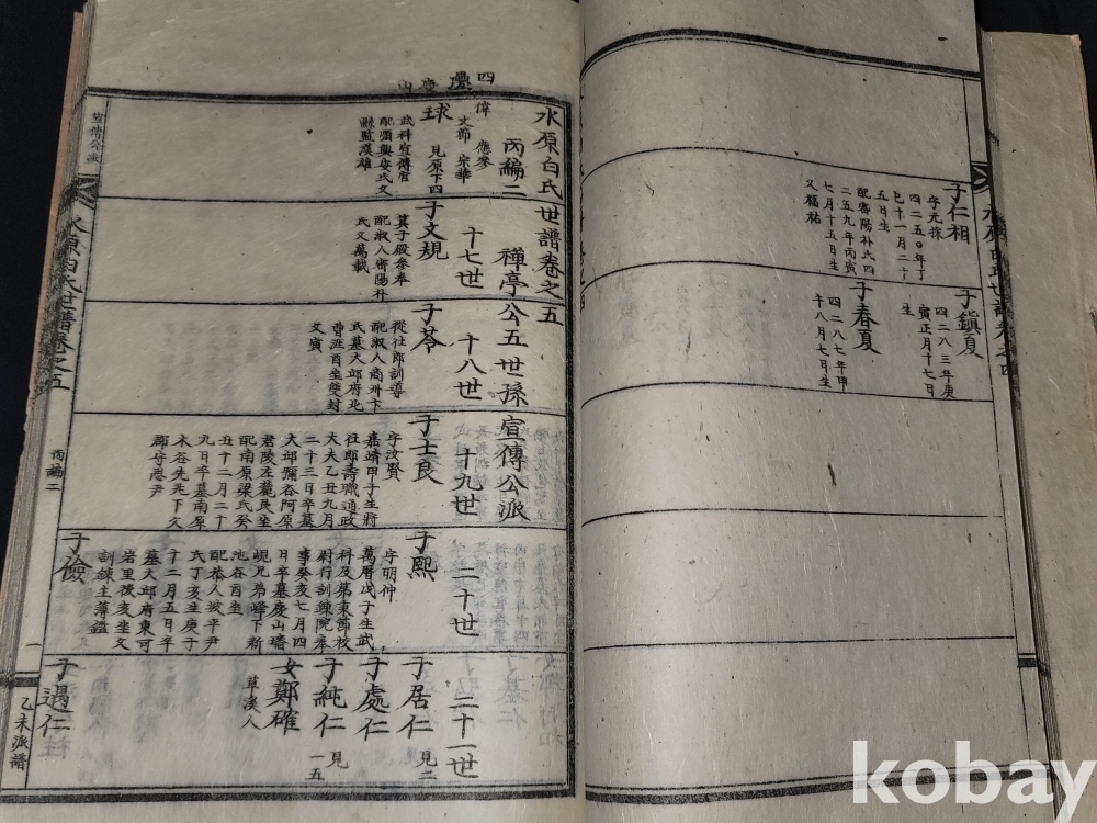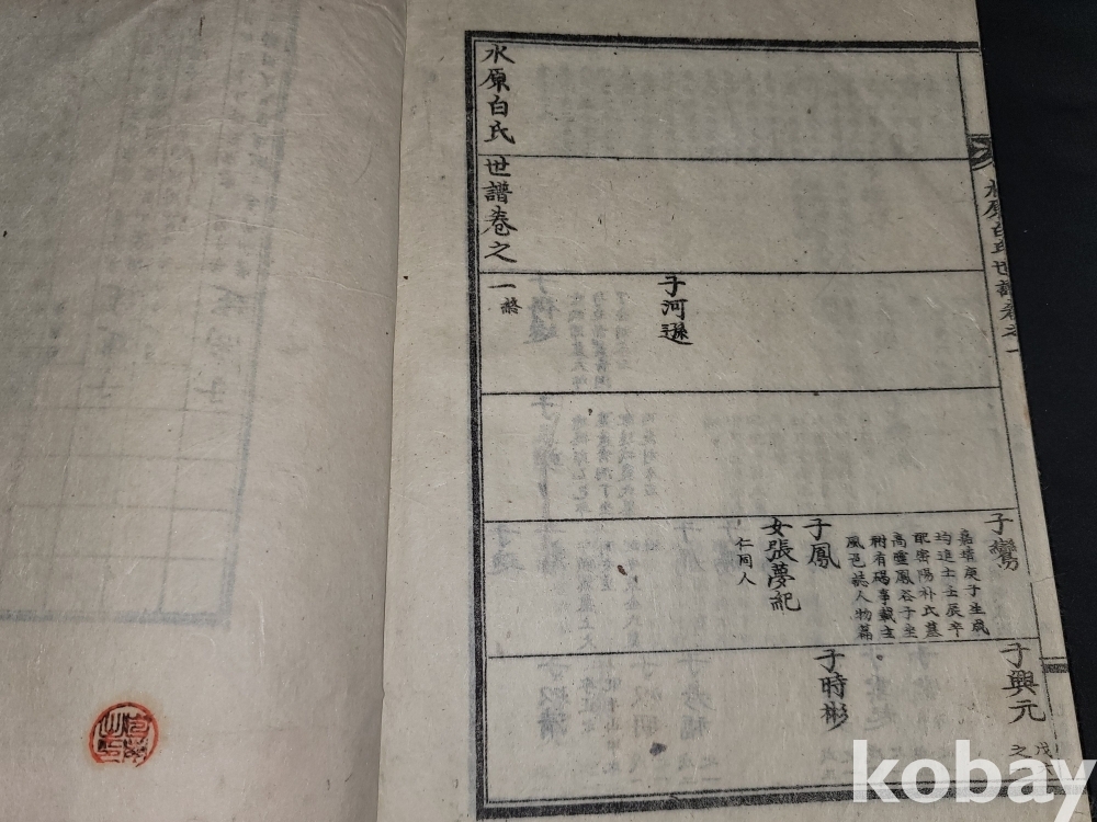 빈티지 세월 감이 느껴지는 수원백씨세보(水原白氏世譜) 족보 관련 고서적 6권 일괄입니다.