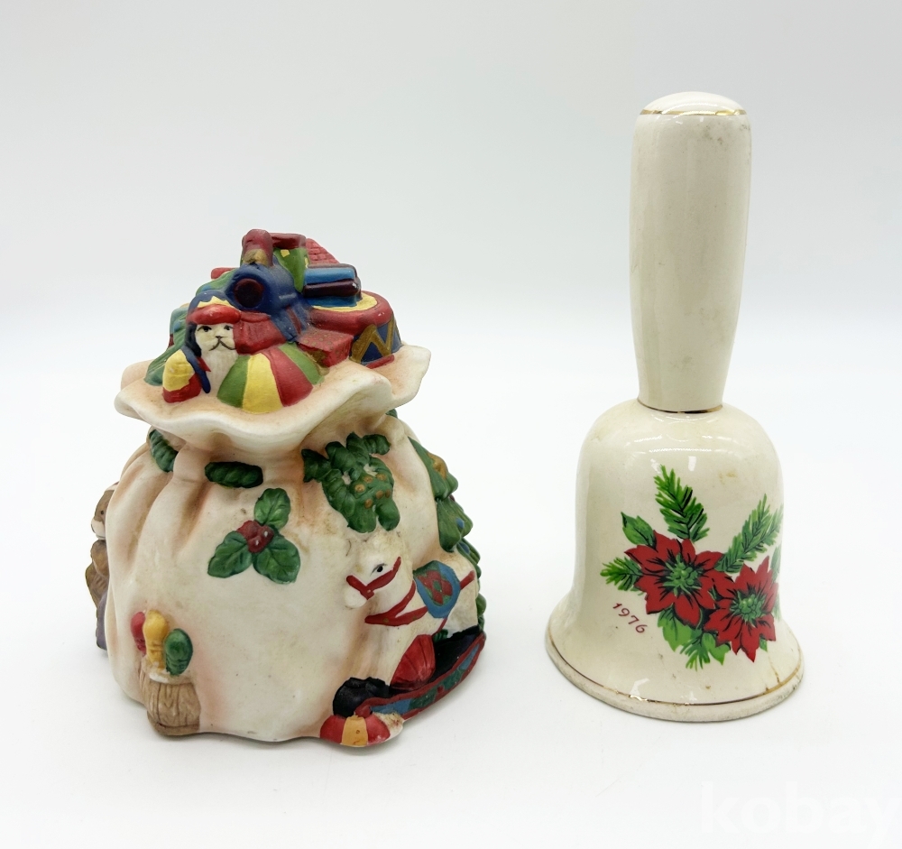 1. 크리스마스 선물 꾸러미 차임벨 / 10.5 x 11 cm 2. 포인세티아 차임벨 1976 / 6.5 x 14 cm 2점 일괄. | ||