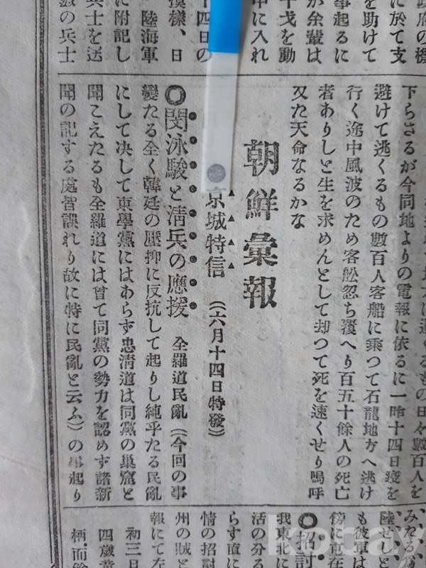 당시 韓國관련 내용,淸日戰爭 관련기사가 실려있다. 4면,6면,8면 신문