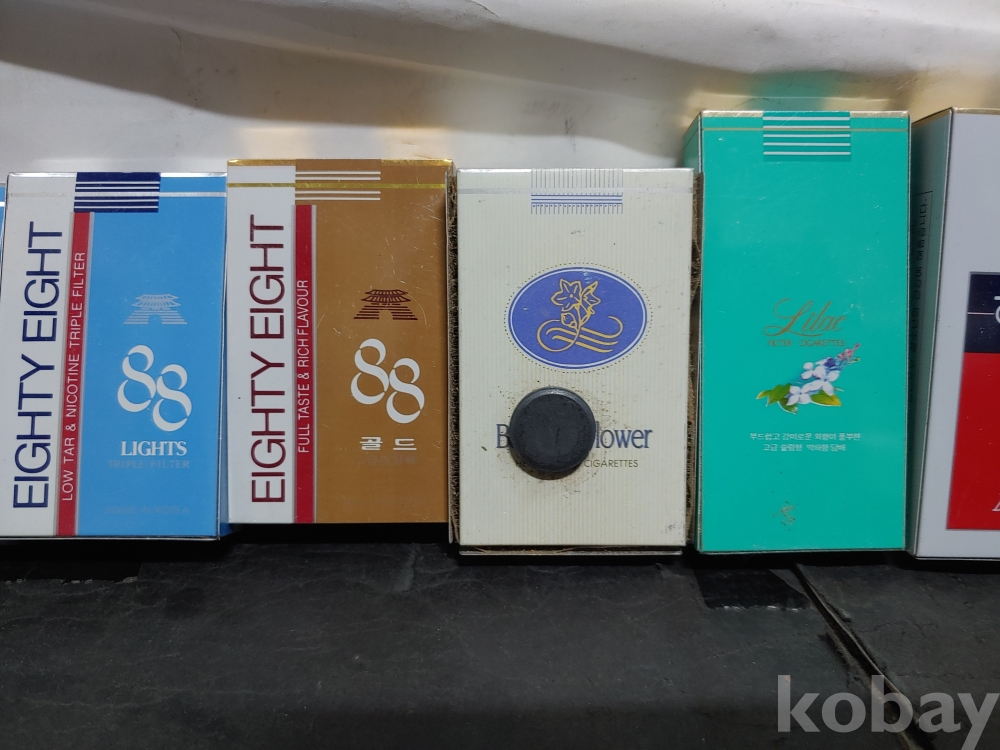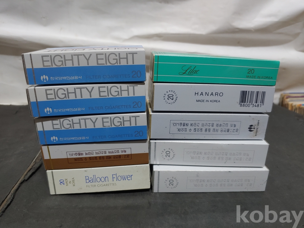 ""88 라이트, 도라지, 라일락 멘솔, 하나로, 엑스포 담배 모형 샘풀 포갑지 10개""