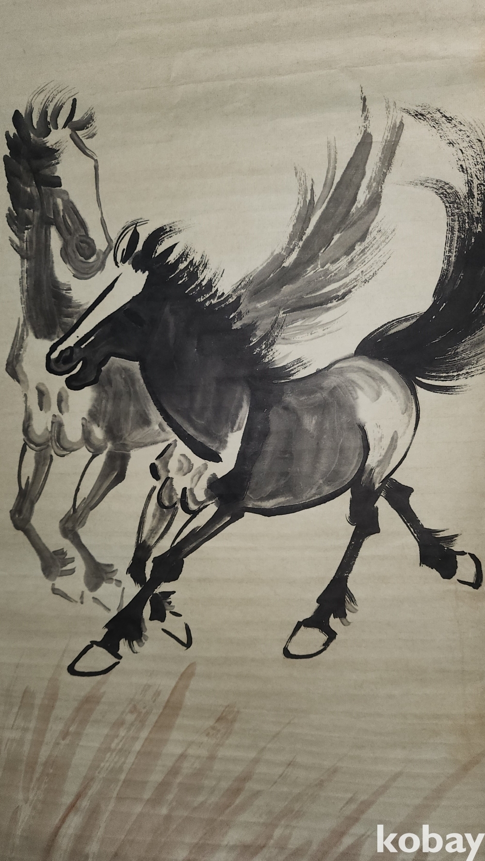 중국 유명화가 千北平 작품으로 말그림 수묵화입니다,